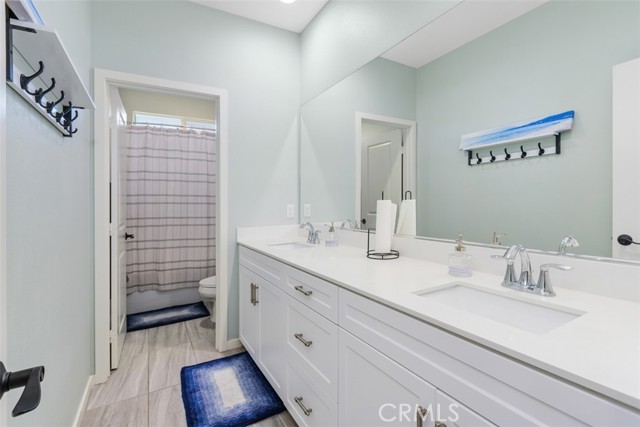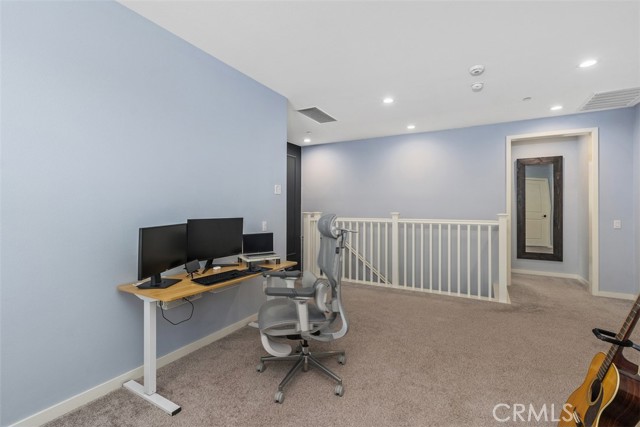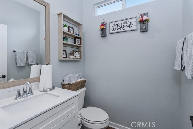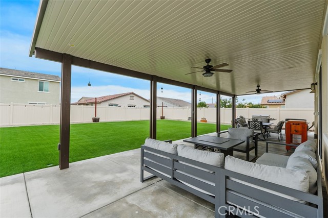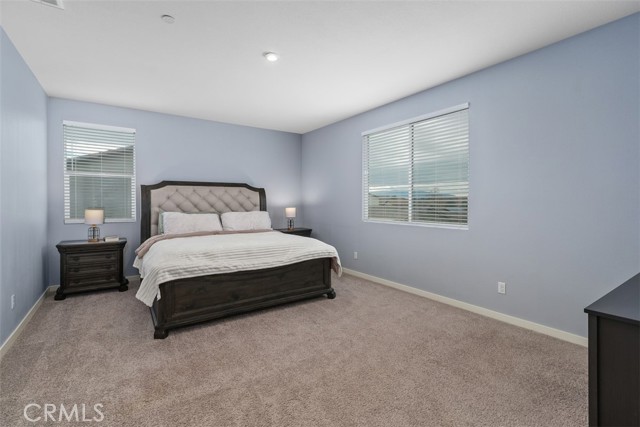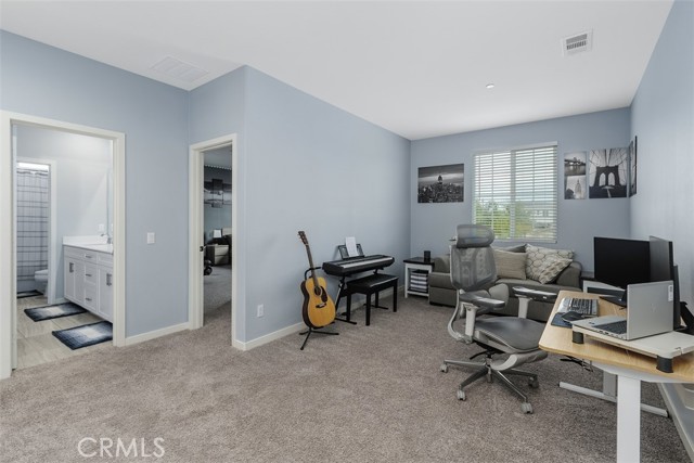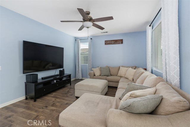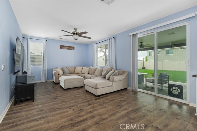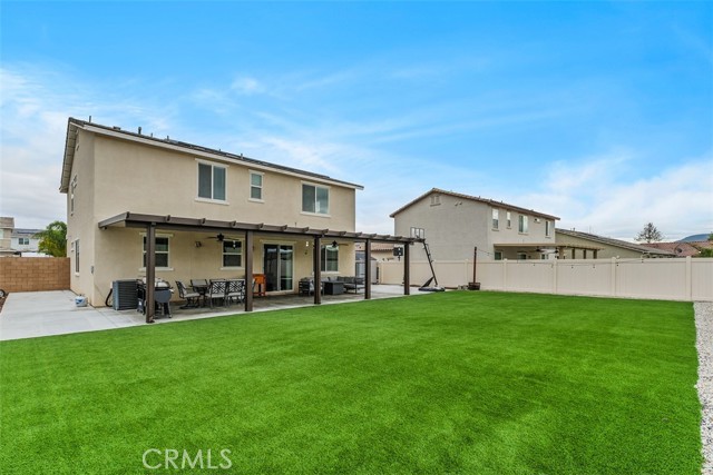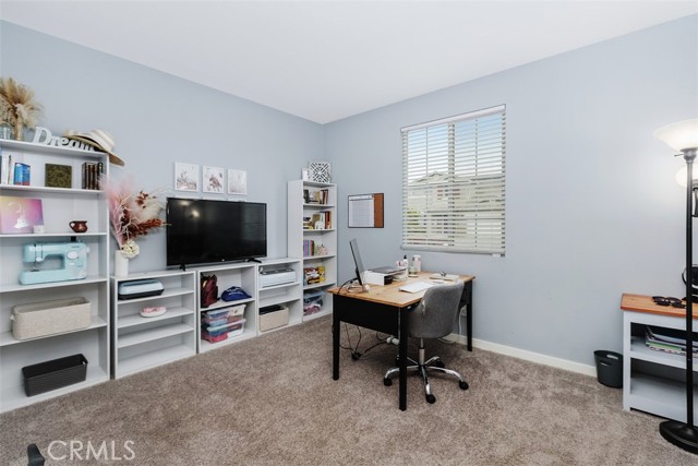 Welcome to this beautiful, turnkey home on a quiet cul-de-sac street. Nothing needed here, unpack and enjoy your entertainer's paradise backyard that features a large concrete patio covered by Alumawood patio cover, tons of space to lounge and BBQ. The kids will love the large turf backyard to play and you will love the low maintenance! RV Parking Ready by simply removing the wall and adding a gate. Concrete is already poured and ready in the front with extra wide driveway and backyard on both sides of the home. Save big on your electric bill with Owned Paid off Solar! Enjoy peace of mind with in home security system, cameras and all equipment included ready to activate. In the evenings in addition to your AC, stay cool and save electricity with your whole house fan. Inside the wonderful open layout makes great use of it's 2,641 sqft which including 3 bedrooms, 2.5 baths, plus down stairs main level office that can be a 4th bedroom by simply adding a closet as well as a upstairs a large loft TV game room that can easily be converted to a 5th bedroom option. Upon entry to the home, you will notice stunning wood LVP floors that flow throughout the downstairs. Your office and half bath immediately to your right and then you will enjoy a spacious open dining room which connects to the kitchen and right into the living room. The kitchen features a large island, granite countertops, stainless appliances which include gas stove/oven, microwave and dishwasher. Upstairs, you're welcomed by a large open loft. This loft was an optional 4th or 5th bedroom and could be easily converted. The Master Suite is large with a luxurious on suite bathroom, tile floors, separate vanities, walk in shower and a large walk-in closet. Across the hall you'll find the large upstairs laundry room which includes washer and dryer and lots of storage space. Then you have very spacious bedrooms 2 and 3 where each have large walk in closets. Bathroom number 2 features tile floors, double sinks, beautiful single slab countertops and tub shower combo. Both the front and backyard are fully landscaped and low maintenance. This stunning home is an absolute gem, in a well-kept newer neighborhood, a must see! Don't miss this one!