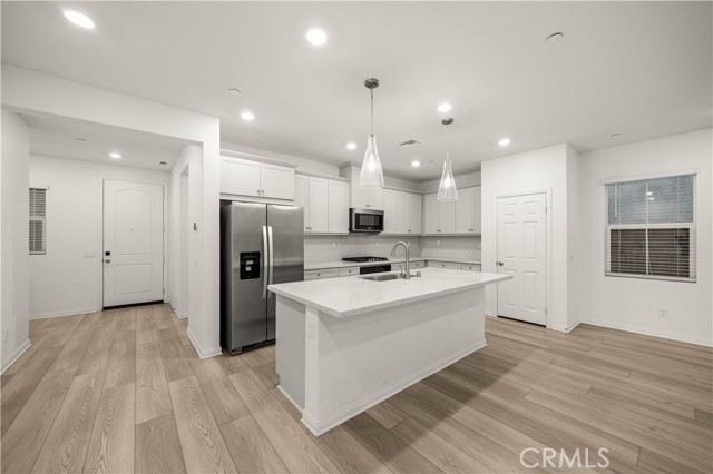 Paid off Solar Panels!!!!Located at 3918 E Cambria Privado in Ontario, this beautifully maintained 2023-built home offers a perfect blend of modern design, comfort, and true move-in-ready convenience. The first floor features a highly desirable open-concept layout where the kitchen, dining area, and living room flow seamlessly together, creating a bright and expansive great room ideal for everyday living and entertaining. A thoughtfully designed first-floor bedroom with a full bathroom adds exceptional flexibility for guests, multi-generational living, or a private home office. Upstairs, the home continues to impress with two secondary bedrooms sharing a full bathroom, along with a spacious primary suite complete with a walk-in closet for enhanced privacy and comfort. An exceptionally large loft—larger than the primary bedroom—offers endless possibilities as a second living area, media room, or entertainment space. The upstairs laundry room eliminates the inconvenience of carrying laundry up and down stairs and comes fully equipped with a washer and dryer. The home also includes a refrigerator, with all major appliances being 2023 models, delivering true turnkey living. The backyard has been fully finished with clean concrete hardscaping for a low-maintenance and functional outdoor space perfect for relaxing or hosting gatherings. Meticulously cared for and like new, this home is an outstanding opportunity for buyers seeking a modern layout, premium condition, and effortless living.
