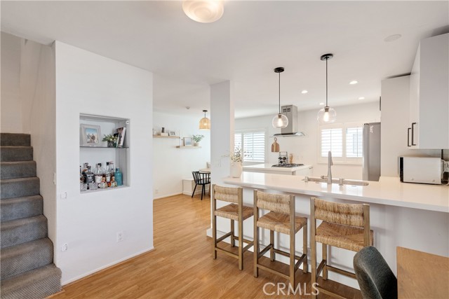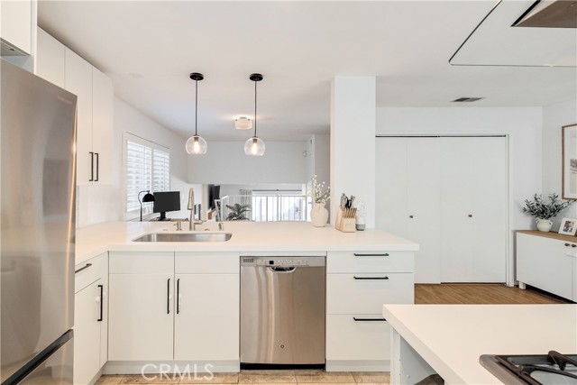 Welcome home to this beautifully updated end-unit townhome in the heart of North Redondo Beach. Offering 1,435 square feet, this 2-bedroom, 2-bath residence is truly turnkey. As soon as you enter through the front door, you’re greeted by an abundance of natural light, making the entire space feel bright and welcoming. The open living space is anchored by a cozy fireplace and seamless access to a large, turfed private patio—perfect for indoor-outdoor living and entertaining. The remodeled kitchen features new stainless-steel appliances, a warming drawer, built-in wine fridge, and an adorable breakfast nook. Both bedrooms are generously sized, with the primary suite boasting an en-suite bathroom and walk-in closet with custom built-ins. Additional highlights include hardwood flooring, new bespoke lighting fixtures throughout, and an attached 2-car garage with ample storage. Ideally located near award-winning schools, the beach, and beloved local favorites like Georgia’s and Tommy & Atticus, this thoughtfully updated townhome delivers move-in ready comfort and an unbeatable South Bay lifestyle.