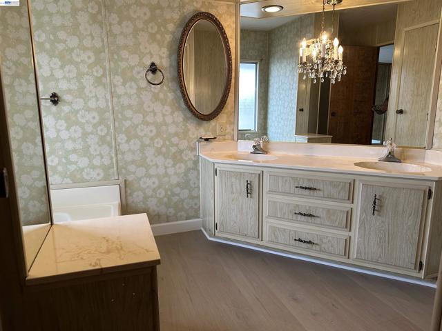 Discover this lovingly maintained mobile home in the sought-after New England Village, a welcoming senior community. This residence has fresh interior and exterior paint as well as new flooring, featuring 2 bedrooms and 2 full bathrooms. The kitchen has lots of storage and counter space w/built in table. The refrigerator stays. The generously sized master suite has a sliding glass door to the outdoor covered patio and private bathroom, providing a serene retreat. Additional conveniences include an indoor laundry room complete with a washer and dryer. Enjoy the versatility of separate living and family rooms, perfect for both relaxation and entertainment. Outside, you'll find a spacious covered front porch ideal for unwinding, one large storage shed, and the comfort of an AC unit. With guest parking just around the corner, hosting friends and family is a breeze. The community elevates the experience with amenities like a clubhouse, pool, spa, and more. This property truly offers a harmonious blend of comfort, functionality, and lifestyle. Don't miss out on this delightful opportunity! Fireplaces: NO
