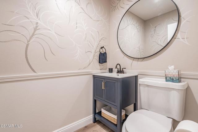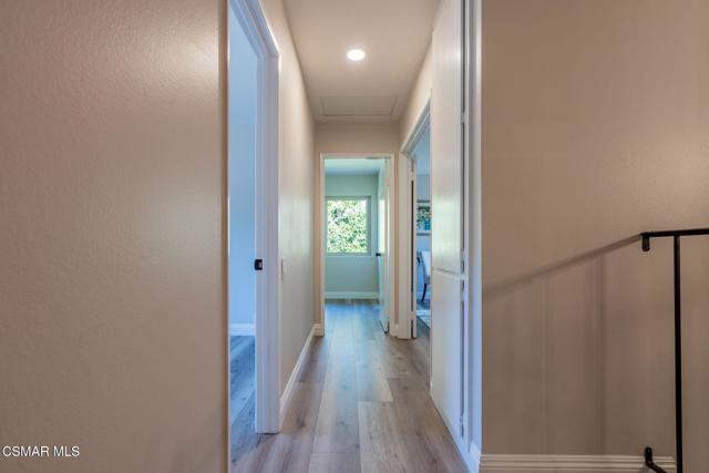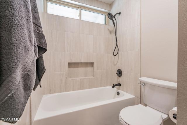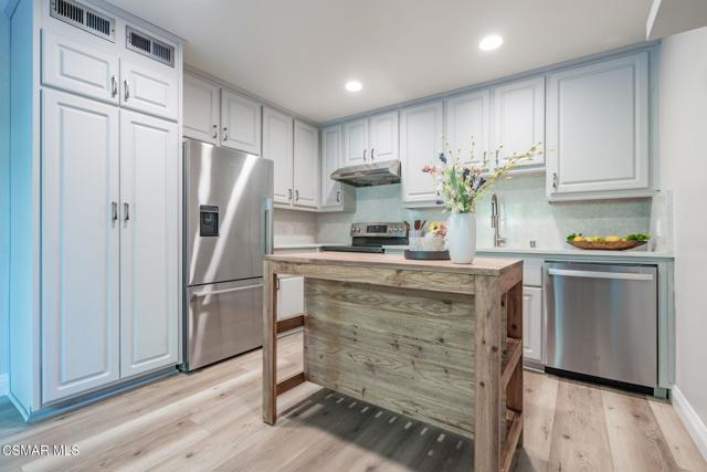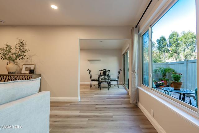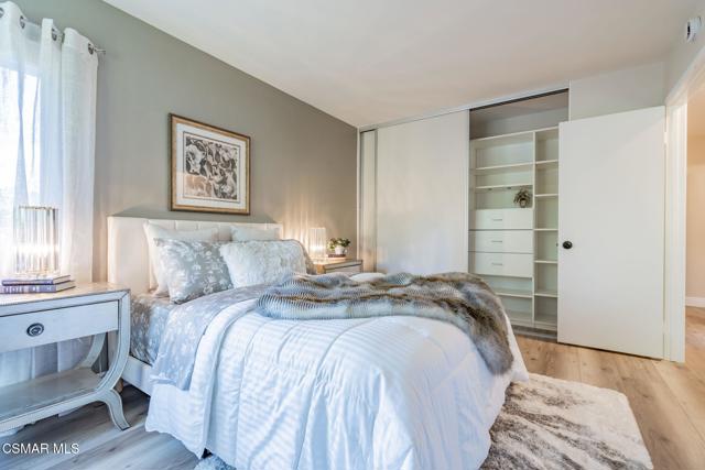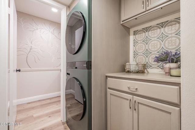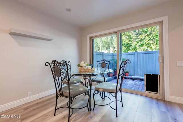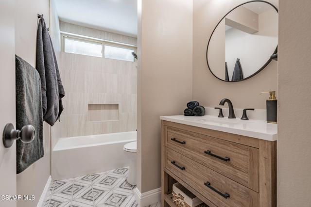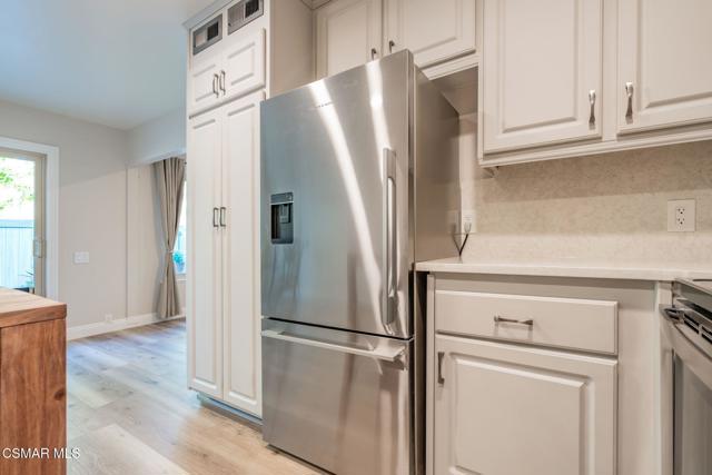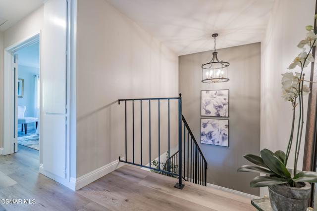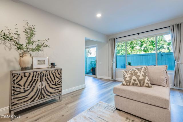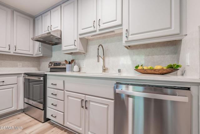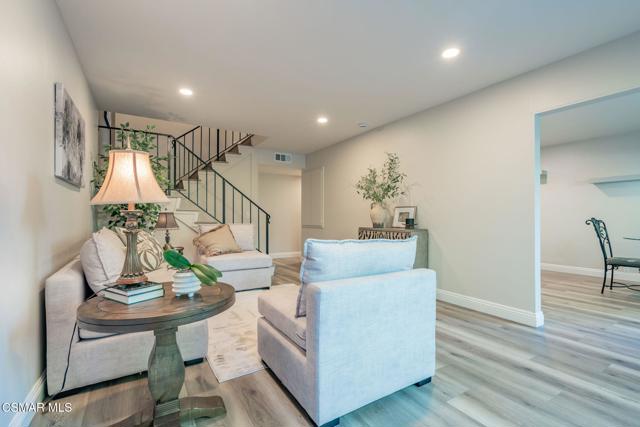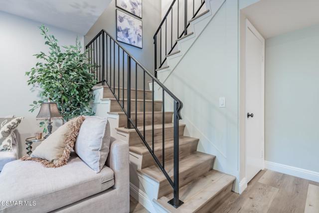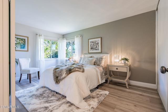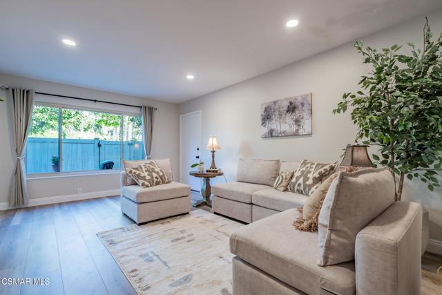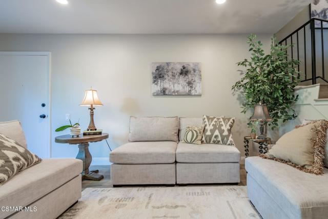 This meticulously designed Turn-key home is nestled in the peaceful Oakbrook Townhomes community with abundant greenbelts and tree lined pathways situated in the beautiful, centrally located city of Thousand Oaks. This 3 bed/1.5 bath 1152 Sq. Ft. townhome is upgraded throughout by an interior designer with upgrades including: new luxury vinyl plank wood-like flooring, new paint with elegant designer color pallet, five inch baseboards, scraped ceilings , and dimmable recessed lighting just to name a few. Both bathrooms have new sinks, vanities and fixtures including the upstairs beautifully tiled shower with bathtub and the designer color pallet carrying over to the gorgeous tiled floor. The kitchen boasts Spanish quartz counter tops and backsplash, custom cabinetry, soft-close drawers, LG stainless steel appliances, a Fisher & Paykel stainless steel refrigerator, a large basin stainless steel sink and a high end Wasserwerk pull down kitchen faucet. Some energy efficient features include a newer Bosch HVAC system, LG ThinQ Smart washer and dryer, and double-paned American Vision windows throughout including patio slider. The park-like amenities include a large pool, a separate kiddie pool, spa, clubhouse, and a playground area surrounded by the lush green landscaping. The low HOA fee also includes : trash, insurance, and maintenance of the home's exterior and common areas. A serene neighborhood with great shopping, dining and the Conejo Valley award-winning schools nearby. This is a must see Turn-key home ready for a new happy owner to enjoy for many years to come.
