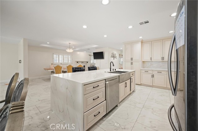 Beautifully remodeled cul-de-sac home in Northridge featuring one of the largest floor plans in the neighborhood and a flexible layout designed for modern living. Enjoy two expansive living areas, designer tile flooring, engineered hardwood bedrooms, and a stunning chef’s kitchen with a waterfall-edge island, brand-new Bosch appliances, and a premium ZLINE stainless steel stove. Fully paid solar provides energy efficiency, while an 8-camera security system offers added peace of mind. The converted garage presents excellent potential for a bedroom, home office, or Junior ADU, creating added income or multigenerational living options. With generous parking, private outdoor space, and a prime location near shopping, dining, and CSUN, this turnkey property is perfect for first-time buyers or savvy investors alike.