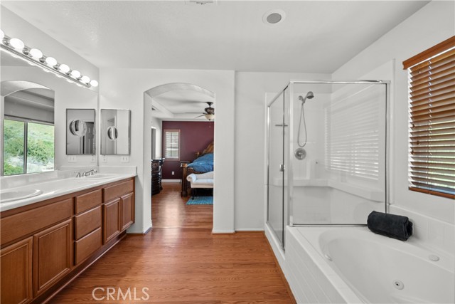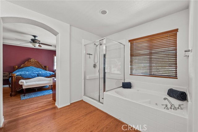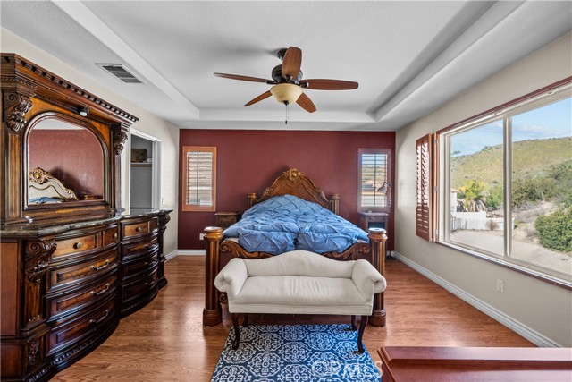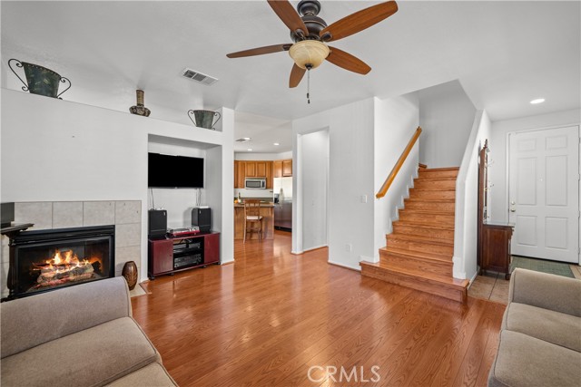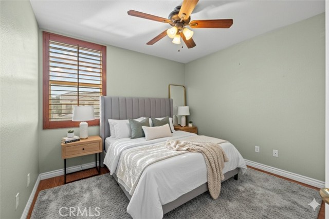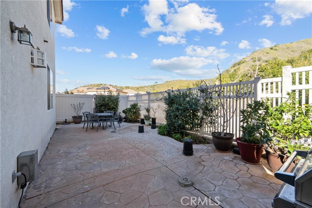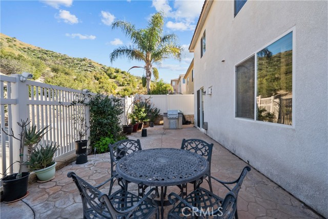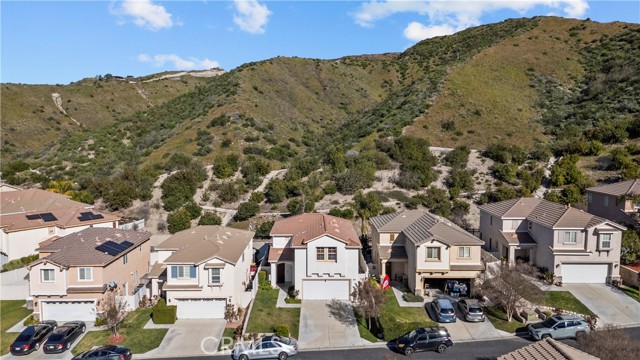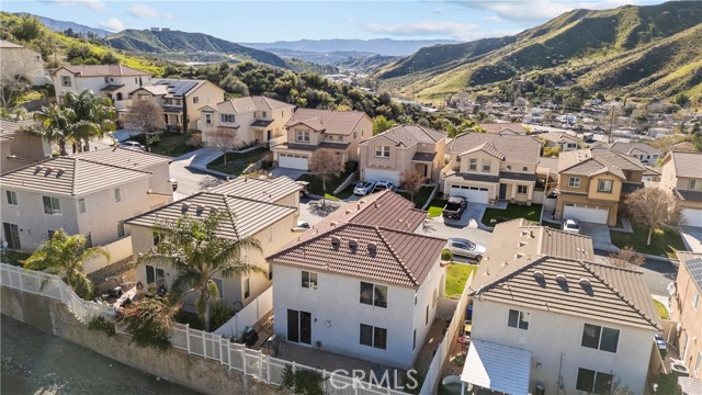 LOW HOA and NO MELLO-ROOS! Welcome to this beautifully maintained 4-bedroom, 2.5-bathroom home tucked away on a peaceful cul-de-sac in the desirable Mint Canyon Community. This bright, open-concept residence features hardwood laminate flooring, plantation shutters, and a cozy gas fireplace. The sunlit kitchen is highly functional, offering plenty of countertop space with a large center island and double ovens. Step outside to your private, hardscaped backyard retreat, complete with a built-in gas BBQ, easy-maintenance stamped concrete, and timed landscape lighting, all framed by picturesque mountain views. Upstairs, a versatile loft with a built-in office nook provides the perfect remote workspace, alongside a conveniently located laundry room. The spacious primary suite is a true getaway, featuring two walk-in closets, a spa-like bath with an oversized jetted tub and dual sink vanities. Finished with ceiling fans, storage shelves in the garage, and a whole-house water filter, this home perfectly blends comfort and convenience. Located just minutes from the 14 Freeway, shopping, and the College of the Canyons campus, this tranquil haven is ready to be yours.