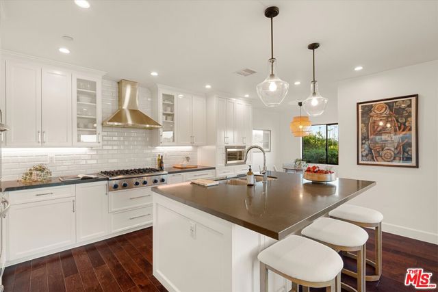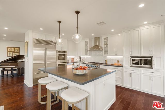 The four most sought after elements in LA real Estate: Privacy, Pool, Yard, and Views. Seek no further as this home has them all and was meticulously designed for modern living. Spacious Primary ensuite, expansive center hall, warm and inviting great room which is the perfect gathering space to share life's memorable moments. In addition to the primary suite, there are four rear bedrooms: perfect spaces for privacy, creativity, and peace. The kitchen is meticulously designed for function and warmth. Thermador and Sub-zero appliances, center island with quartz countertops, coffee bar and open to the great room, the ideal blend of luxury and functionality. Let's get you into your new home: perfect for today's lifestyle of zoom calls and facetimes, creative spaces, and with inviting gathering spots to come together and share and create life's best moments. Oh wait, there's more; The home was designed to take full advantage of the amazing views of the Hollywood Hills and downtown LA. From Century City to Culver City, the Griffith Observatory to the Hollywood Sign all from the dining room table in the great room. And I haven't even mentioned the massive flat lot with rectangular heated pool and spa and the stand alone gym. The yard is completely hedged in for privacy with raised dining area, multilevel and perfect space for entertaining. As a bonus, there is a rear yard area that is the perfect flex space for a batting cage, yoga retreat, or putting green. This is the home you and your clients have been searching for: minutes to Culver City, freeways, the new Whole Foods, LAX, Sofi, Intuit Dome, the Coliseum and the BMO stadium and museums.