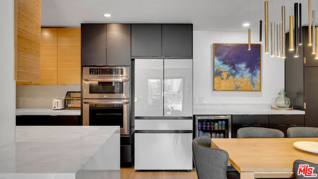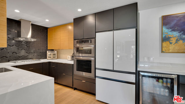 Designer-Renovated 3-Bedroom Condo with Expansive Private Terrace in Playa del ReyWelcome to Villas del Rey, one of the most desirable gated communities in the charming coastal neighborhood of Playa del Rey. This beautifully renovated 3-bedroom, 2-bath residence offers approximately 1,367 square feet of thoughtfully designed living space and an ideal split-bedroom layout that provides both privacy and flexibility.The home opens into a spacious open-concept living and dining area featuring luxury vinyl plank flooring, recessed lighting, and a contemporary fireplace with custom surround, creating a warm yet sophisticated space for relaxing or entertaining. Large sliding doors lead to an exceptionally spacious private terrace (approximately 23' x 17')perfect for outdoor dining, entertaining guests, gardening, or enjoying the coastal breeze.The fully remodeled designer kitchen is a standout feature of the home, showcasing striking Italian porcelain backsplash and waterfall countertops, custom bamboo wood upper cabinetry paired with velvet black lower cabinets, and a full suite of Samsung appliances including a Bespoke refrigerator, new dishwasher, stove, oven, and microwave. A built-in beverage refrigerator and elegant 42" Santana dining chandelier complete the space, creating a stunning focal point for gatherings and everyday living.The primary suite offers a spa-inspired retreat, complete with a fully renovated bathroom featuring custom Kohler fixtures, dual sinks, and an oversized walk-in shower with dual water distribution and integrated stability bars for enhanced comfort and accessibility. Two additional bedrooms provide flexible space for guests, a home office, or creative studio.Additional highlights include:* In-unit laundry* Modern lighting throughout* Designer finishes and fixtures* Walk-in closet in primary suite* Abundant storage throughout* Luxury vinyl plank flooringResidents of Villas del Rey enjoy resort-style amenities, including a pool, spa, tennis courts, fitness center, sauna, clubhouse, and beautifully landscaped grounds within a secure gated community.Ideally located just minutes from Playa del Rey Beach, Marina del Rey, Playa Vista, Silicon Beach, and LAX, this home offers the perfect balance of coastal living and urban convenience.