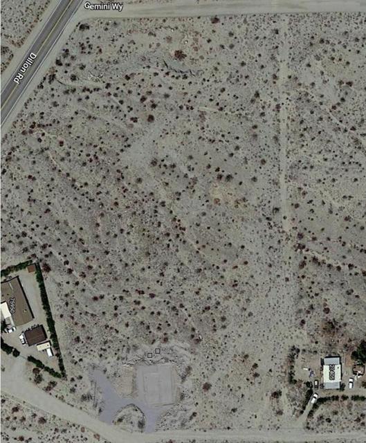 This expansive 4.78-acre parcel is situated on the northeast corner of Dillon and Gemini. The land is primarily flat and designated as R-1A agricultural zoned, making it ideal for a variety of uses. Its location provides convenient access to several key areas: just 30 minutes from downtown Palm Springs, 20 minutes from Desert Hot Springs, and only 10 minutes from the I-10 Freeway.Enjoy 360-degree panoramic mountain and vista views that highlight the natural landscape. The property offers fresh desert breezes and opportunities to observe local wildlife, creating a tranquil and inviting environment.For those seeking to develop their own private paradise, this property presents a unique opportunity. It is close enough to entertainment and modern conveniences yet offers a sense of seclusion and the possibility to live somewhat off the grid. The land includes a potential natural water reservoir and ample space for horses. Additionally, a designated building site has been added, ready for new ideas and development. H2O and electric laterals are located nearby, further enhancing the property's appeal.
