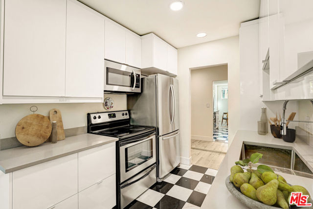 Located at the base of Runyon Canyon Park, this beautifully updated one-bedroom residence at Casa Palmero offers stylish living in one of Los Angeles' most sought-after neighborhoods.Inside, the home has been thoughtfully renovated with a clean, modern aesthetic. Waterproof wood-style flooring, recessed lighting and dual-paned windows create a bright, comfortable living space filled with natural light throughout the day.The open layout allows the living and dining areas to flow easily together, creating an inviting space to relax or entertain. The kitchen features sleek quartz countertops, stainless steel appliances and soft-close cabinetry, blending contemporary design with everyday functionality. The spacious bedroom offers a quiet retreat, while the updated bathroom brings a refined touch with modern finishes and fixtures. A standout feature of the home is the large private patio, offering rare outdoor space perfect for morning coffee, dining al fresco, or simply enjoying the Southern California air. Residents of Casa Palmero enjoy access to community amenities including two fitness rooms and a sauna, while the swimming pool and spa are currently in the final stages of a complete remodel, soon to offer a refreshed space for relaxing and enjoying the Southern California lifestyle.Just moments from the hiking trails of Runyon Canyon, and close to some of the area's best restaurants, nightlife, markets, and everyday conveniences, this home offers the perfect balance of city energy and peaceful retreat.
