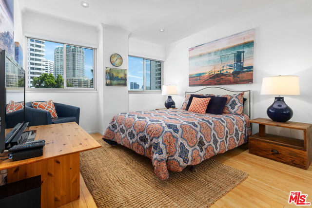 Located in the iconic Crown Towers, Residence #503 presents an exceptional opportunity to own in a premier full-service building at an attractive price point. This desirable corner unit offers sweeping city vistas stretching across Century City and Holmby Hills. The well-proportioned layout includes two bedrooms and two bathrooms with an open living and dining area filled with natural light and access to a spacious private balcony.The home offers a wonderful canvas to customize while already featuring thoughtful upgrades such as bamboo flooring, recessed lighting, dual-pane windows, and an updated kitchen appointed with quartz countertops, stainless steel appliances, and a convenient breakfast bar. The generously sized primary suite provides a relaxing retreat with two closets, including a walk-in, along with a private en-suite bathroom.Residents enjoy an array of full-service amenities including 24-hour valet and concierge, professional on-site management, a pool, fitness center, sauna, and a comfortable residents' lounge. HOA dues cover water, trash, building insurance, and cable TV with HD/DVR. Ideally situated just moments from Westwood Village, University of California, Los Angeles, Century City, and Beverly Hills, this is a fantastic chance to create your ideal home in one of Los Angeles' most desirable locations.
