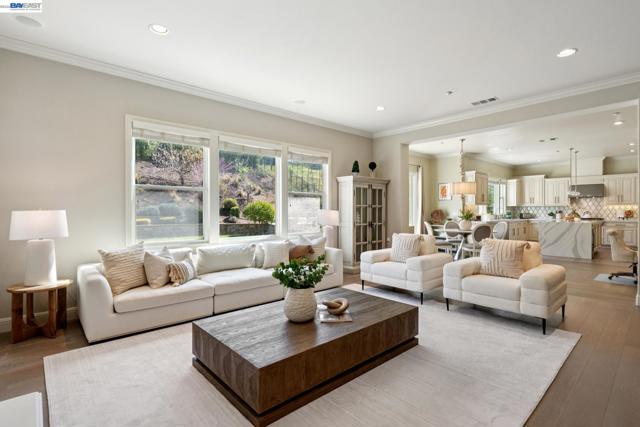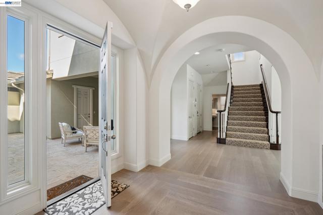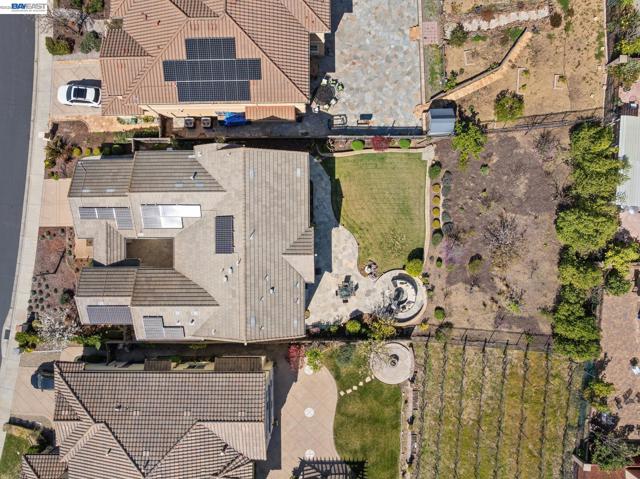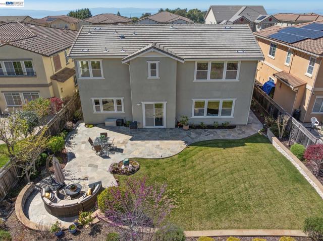 Perched on a premier hilltop lot in the gated Stonebrae Country Club community, this stunning Toll Brothers Inverness model spans 4,315 sq ft on a 0.27-acre lot and features 4 bedrooms, 3.5 bathrooms, and a spacious loft with potential for a 5th bedroom suite. Thoughtfully upgraded with ~$345K in improvements, the home showcases a remodeled chef’s kitchen with Cambria waterfall island, Artistic Tile backsplash, Brizo faucet, and Ruvati sink, opening to a spacious great room with designer flooring and 7.1 surround sound with Klipsch ceiling speakers. Interior upgrades (~$200K) also include flooring, paint, wallpaper, Porcelanosa powder room, smart home features, plus ~$86K in builder upgrades. Rarely available, the expansive backyard is designed as a $100K orchard and garden retreat with WiFi irrigation, fountain, hardscape, raised beds, and a wide variety of mature fruit trees, berries, and flowering plants—perfect for entertaining and enjoying indoor-outdoor living. Energy upgrades (~$45K) include solar, Tesla Powerwalls, and EV charging, offering high efficiency and long-term savings. Complete with a gated front courtyard with fireplace, this exceptional home blends luxury, functionality, and resort-style living in one of Hayward’s most desirable communities.