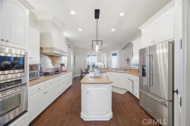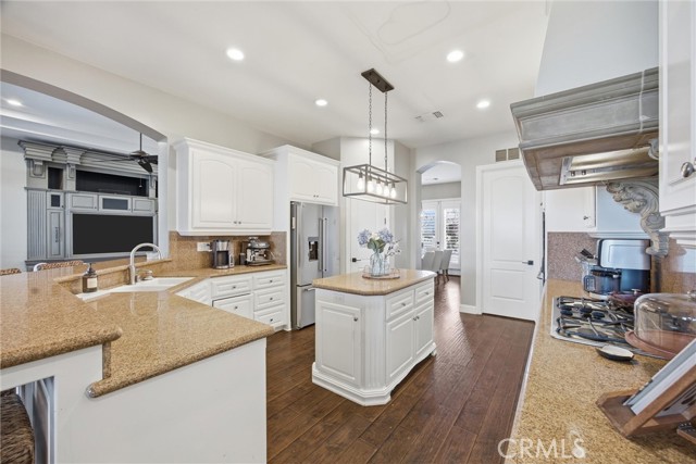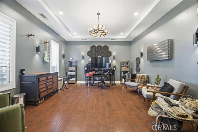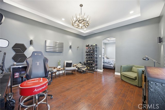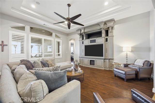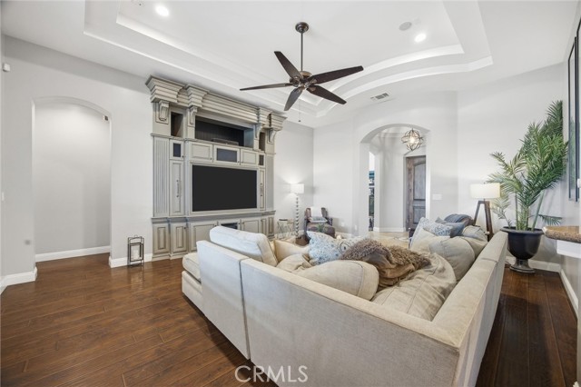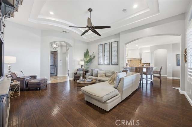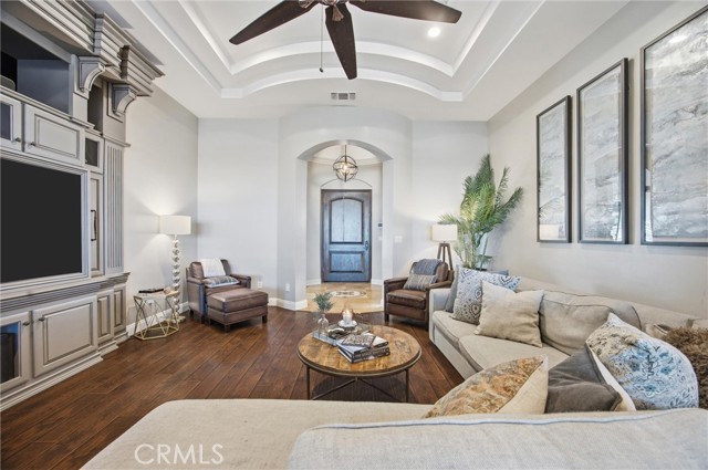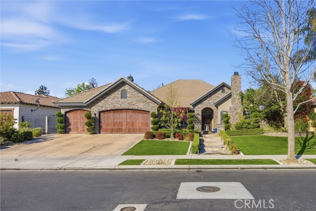 Welcome to this beautifully designed Mediterranean-style home located in the gated community of Seven Oaks at Grand Island in southwest Bakersfield. Built in 2006, the home offers approximately 3,900 square feet of living space on an expansive 11,326 sqft. lot. A striking stone-accented exterior and arched entry lead into a private courtyard with a charming fountain, creating a warm and inviting first impression. Inside, you’ll find rich wood flooring, high ceilings, and thoughtfully designed living spaces filled with natural light. The formal living room features a coffered ceiling, while arched doorways and architectural details add character throughout. The spacious floor plan offers multiple areas for both everyday living and entertaining, with a natural flow from room to room. Large windows bring in plenty of light and overlook the beautifully maintained grounds. Situated on a generous lot, the backyard is a true private retreat. It features a luxurious pool and spa perfect for unwinding after a long day, surrounded by plenty of space to relax, entertain, or create your ideal outdoor setting. Located within a quiet gated neighborhood with a small HOA of $177.50, this home offers both privacy and convenience in one of southwest Bakersfield’s desirable communities.