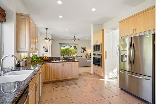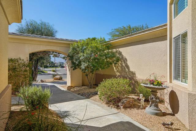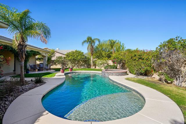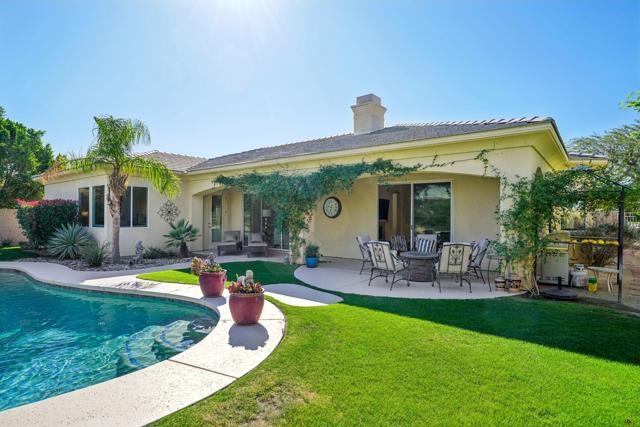 Step into a lifestyle of unparalleled comfort with this stunning 4-bedroom, 3.5-bath residence featuring a detached casita. Designed for the entertainer, the bright airy floor plan boasts soaring ceilings and seamless indoor-outdoor flow. Dual sided raised hearth gas fireplace highlights the living & family rooms and kitchen perfect for even the most discerning of chefs. Step out to the spectacular backyard oasis, anchored by a large sparkling pebble-tech pool with tanning shelf & spa and mature, lush landscaping. The private, separate casita offers endless flexibility--perfect for a guest suite, home office, or multigenerational living. Complete with an attached garage with built-ins; this home offers the perfect blend of privacy, sophistication, and resort-style living. The community of Versailles comes with all the prestige of Rancho Mirage, close to Palm Springs fine dining & shopping, Shops on El Paseo, and Eisenhower healthcare with easy access to golf at Mission Hills Country Club. Plus Versailles boasts well-maintained tennis/pickleball courts.