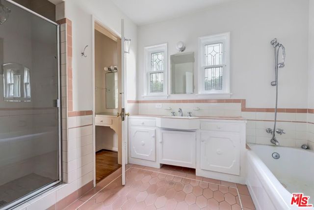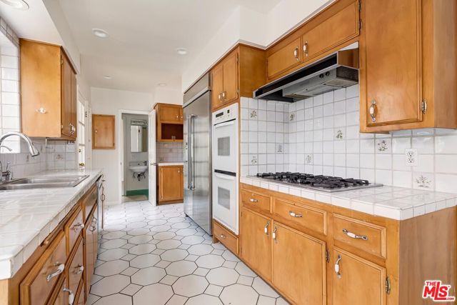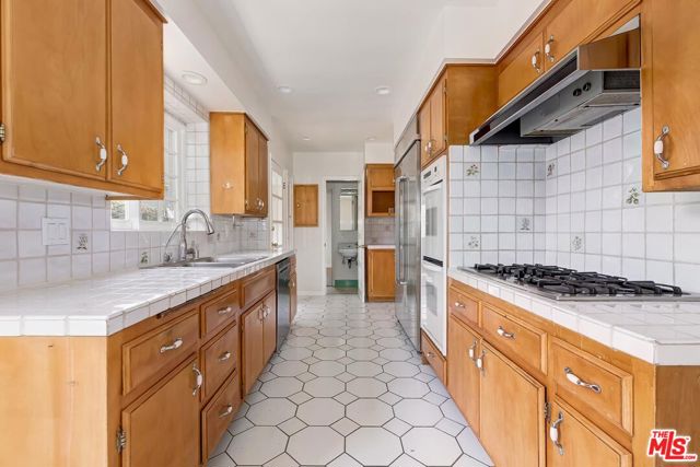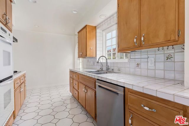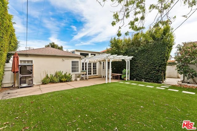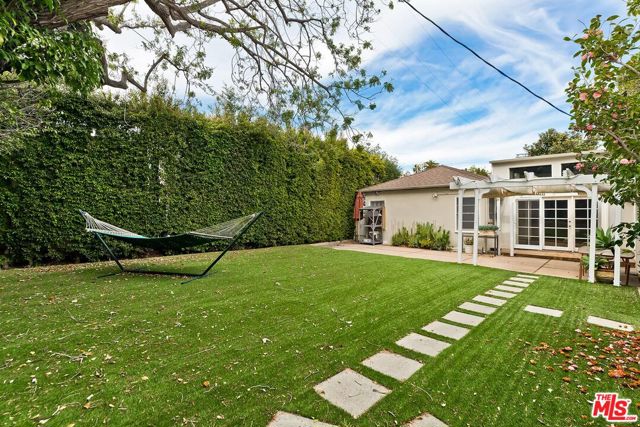 Lovingly maintained and set slightly above the street on an extra-large Westwood lot, this inviting single-level home offers warmth, character, and exceptional potential on one of the neighborhood's most desired streets. From the moment you drive up to the home, you are welcomed by a grassy front yard with mature hedging, and a gated driveway creating an appealing sense of both privacy and presence from the street. Step inside the foyer to a floor plan that unfolds with comfortable scale and timeless appeal. The large formal living room is graciously proportioned and anchored by a fireplace, while a trey ceiling adds architectural detail and a refined sense of volume. Just beyond, the spacious formal dining room features classic wainscoting and flows naturally into the sun-filled family room boasting a raw wood ceiling with exposed beams filling the room with natural light, dramatic volume, warmth and character. Next is the modern eat-in kitchen, which is both functional and welcoming, with ample cabinetry, generous tiled counter space, some stainless appliances, and an inviting breakfast area all drenched in natural light. Just off the kitchen is a separate bedroom with a three-quarter bath, offering flexibility for guests, a home office, service quarters, or additional household needs. And to complete the tour of the home, we arrive at the bedroom wing off a center hallway, arranged for both comfort and privacy. The rear primary suite includes an attached vintage full bath and dual closets and is full of charm, ready to be enjoyed as is or reimagined over time. Two charming Jack and Jill bedrooms share another full bath, creating a practical and appealing layout for family or guests. The rear of the house opens through French doors to a covered patio and expansive grassy area. The indoor-outdoor connection is seamless and inviting, well suited for casual gatherings, entertaining, or simply enjoying backyard relaxation or play. Furthermore, the gated driveway offers an enclosed hardscape play area, adding flexibility for recreation, secure off-street use, or additional outdoor enjoyment. Additional features include a detached two-car garage, a Tesla EV charger, a new roof, and central heating and air conditioning. The property offers tremendous upside. Bring your designer to remodel to your own taste or start from scratch and build the home of your dreams. With its extra-large lot, single-level floor plan, and sought-after Westwood location, this is a compelling opportunity to create something truly special.