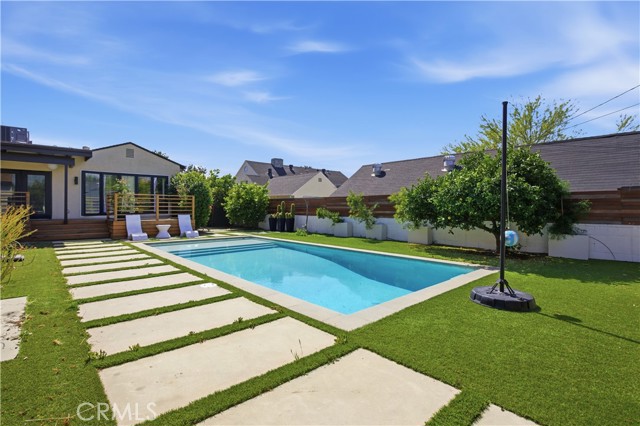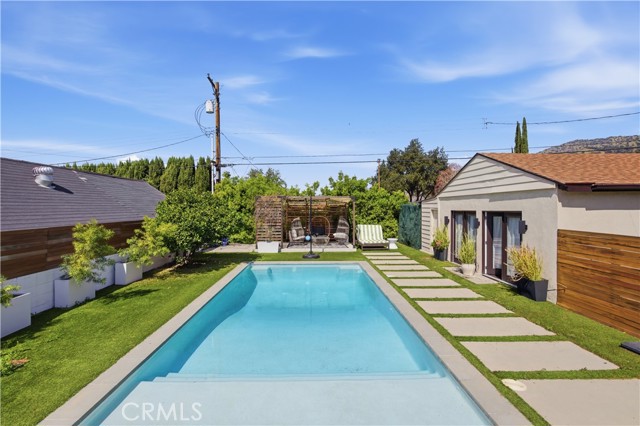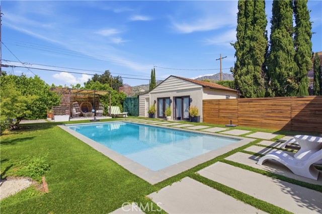 Welcome to 831 E Walnut Ave in the highly desirable neighborhood of Burbank. This charming single-story home perfectly blends classic 1948 character with thoughtful modern updates. This inviting 1,609 sq ft residence sits on a generous 9,433 sq ft lot and features 3 bedrooms and 2 bathrooms. Inside, you'll find a warm and welcoming layout enhanced by updates throughout, including a beautifully refreshed kitchen and bathrooms that bring contemporary style and functionality to everyday living. The primary suite stands out as especially spacious, offering direct access to the backyard for seamless indoor-outdoor flow. Additional bedrooms provide flexibility for family, guests, or a home office. A standout feature is the former garage, creatively converted into a fantastic bonus area—ideal for a home gym, playroom, studio, or additional storage. Please note there is no garage parking available. Step outside to discover your private backyard oasis: a sparkling pool surrounded by a lush lounge area, a generous patio perfect for al fresco dining and seating, and citrus trees that add beauty, fragrance, and fresh-picked enjoyment. The expansive lot provides plenty of room to relax, entertain, or simply unwind in privacy. Located in one of Burbank's most sought-after areas, this home offers convenient access to excellent schools, shopping, dining, entertainment, and major studios—making it an ideal choice for those seeking the perfect balance of suburban tranquility and urban proximity. This move-in-ready home delivers comfort, style, and outdoor living at its best.