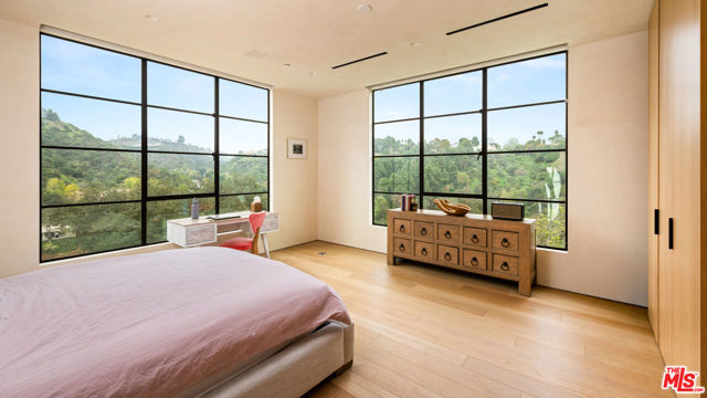 An extraordinary estate designed by renowned architect Noah Walker and set on nearly 4 acres of ultra-private hillside in the prestigious Bel Air. This architectural gem blends beautiful design with sweeping canyon and city-skyline views, offering 4 spacious bedrooms plus an additional attached guest quarters which can used as a fifth bedroom. Total of 5.5 bathrooms and two living areas with an open-concept flow ideal for both comfort and large-scale entertaining. A state-of-the-art chef's kitchen connects seamlessly to outdoor dining areas. The resort-like grounds feature an Olympic-sized infinity pool, lush landscaping, and expansive terraces positioned for breathtaking sunset moments. After dark, the estate transforms with dramatic architectural lighting that highlights its sculptural lines and ambiance. Private, serene, and exceptionally designed, this is a rare opportunity to experience modern luxury at its highest expression in one of Los Angeles' most exclusive enclaves.