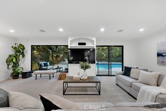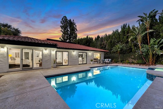 Experience premier single-story living in the heart of Calabasas with this beautifully reimagined residence on prestigious Park Contessa. This 3-bedroom, 3-bath home seamlessly blends modern design with everyday functionality. Set on an expansive 12,000-square-foot lot, the property features fresh exterior paint and professionally landscaped grounds, including a sprawling 1,600-square-foot grassy yard, mature ficus trees, lush greenery, and exceptional privacy. The oversized three-car garage is a standout, complete with epoxied floors, three new contemporary garage doors, and abundant storage. The updated chef’s kitchen offers freshly painted cabinetry, stainless steel appliances, a new double oven with warming drawer, and generous pantry space. Just beyond, the formal dining room—accented by a new chandelier—creates an elegant setting for entertaining. The primary suite serves as a private retreat, featuring a refreshed bathroom, dual closets, and direct access to the backyard. Outdoors, the resort-style yard is designed for quintessential California living, highlighted by a recently replastered pool with new tile, expansive decking for al fresco dining, and multiple intimate seating areas. Ideally located within the award-winning Las Virgenes Unified School District and just minutes from The Commons at Calabasas and Calabasas Lake, this turnkey home offers a rare combination of space, privacy, and refined comfort.