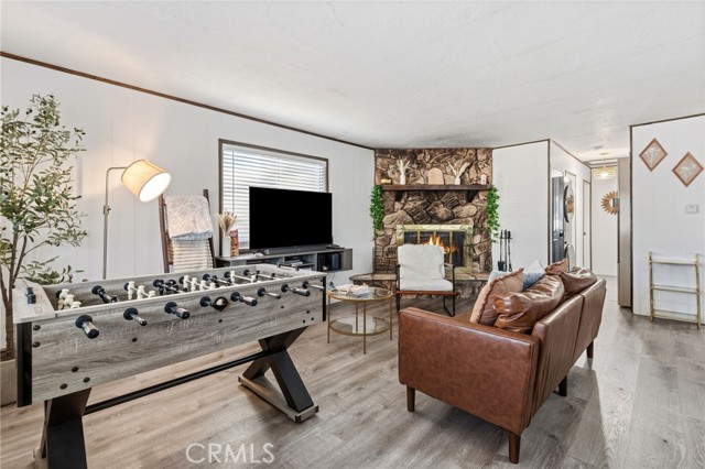Escape to this cozy mountain cabin offering the perfect blend of charm, comfort, and convenience. Featuring 2 bedrooms and 1 full bathroom, this inviting home is ideal as a weekend getaway, full-time residence, or income-producing retreat. Inside, you’ll find an open-concept kitchen and dining area designed for easy living and entertaining. The kitchen charms with butcher block countertops, adding warmth and character, while vinyl flooring runs throughout the main living areas for durability and style. A stackable washer and dryer are conveniently located in the hallway. The living room is the heart of the home, highlighted by a classic rock fireplace with a raised hearth—perfect for cozy evenings after a day outdoors. Go outside to the front deck, an ideal space for BBQs, relaxing, and enjoying the fresh mountain air. A level concrete parking pad provides easy access and convenience. Located near the San Bernardino National Forest, this home offers quick access to hiking trails and outdoor adventure, while being just a short 10–15 minute drive to local slopes, shopping, and dining. With its prime location and inviting features, this property also presents a fantastic opportunity for short-term rental income.