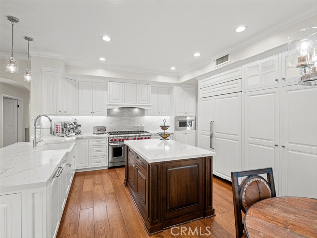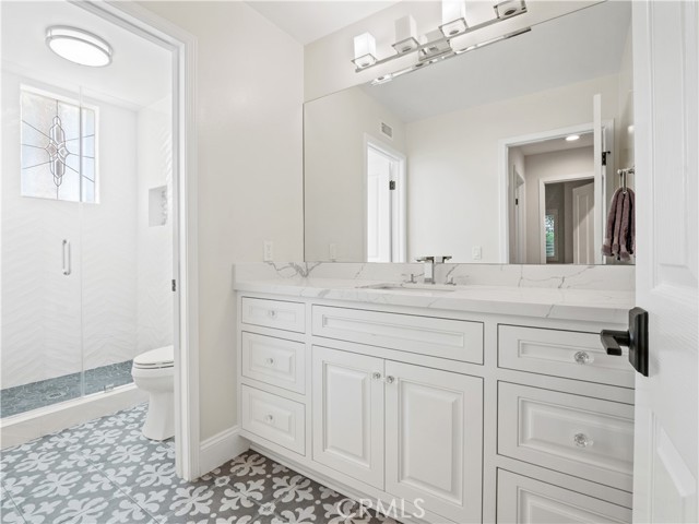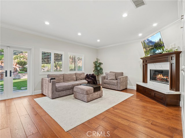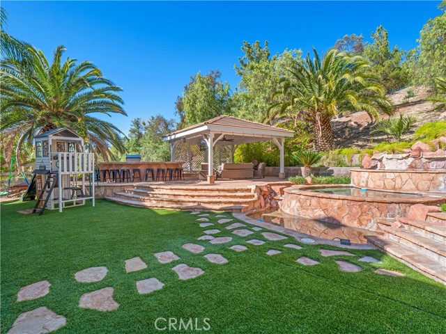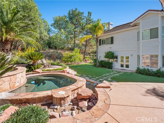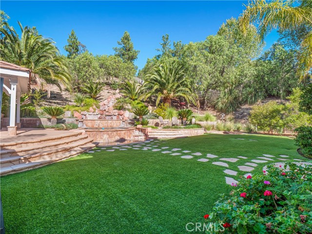 Exquisite Fully Remodeled 5 Bedroom, 3 Bath Sand Canyon Home with Over 4,000 Sqft, Primary with Retreat, Massive Bonus Room, Downstairs Bedroom, Office, and Full Bath, Owned Solar, Solar Back up Battery, 3 Car Garage with a Tropical Oasis Yard on a Cul-De-Sac! Step through the double-door entry into a grand living room featuring a captivating fireplace that opens to the elegant dining area. Interior highlights include crown molding, stunning chandeliers and designer light fixtures throughout, new flooring, new HVAC, new water heater, and shutters. Enjoy a large gourmet eat-in kitchen complete with a Wolf stove and microwave, Cove dishwasher, Sub-Zero refrigerator, expansive center island, farm sink, and a cozy breakfast nook. The kitchen opens to the inviting family room with a beautiful fireplace, custom hearth and mantel, built-in entertainment center, and French doors that lead to the tropical oasis yard. Adjacent to the family room is a built-in bar area with a wine refrigerator, perfect for entertaining. The main floor offers two bedrooms, a full bath, and a laundry room with storage cabinets and a utility sink. Upstairs, find a built-in desk area and bookcases off the landing. The double-door entry primary retreat showcases a fireplace, a large bonus room, and a spa-like ensuite with dual sinks and vanity area, a cast iron custom jet tub, and a glass-enclosed walk-in shower. Two additional bedrooms share a Jack-and-Jill bathroom with dual sinks, and there’s also a massive bonus room with built-in storage and a balcony offering stunning views. Step outside to your private tropical paradise featuring a built-in cooking station with a large bartop and plenty of seating, a huge gazebo, a tranquil waterfall flowing into the spa (with new safety gate and heater), and a large sunken firepit area perfect for gatherings. Located near Sand Canyon Golf Course, new shopping centers, and with easy freeway access — this home truly has it all! Don’t miss your opportunity to make this your New Home!