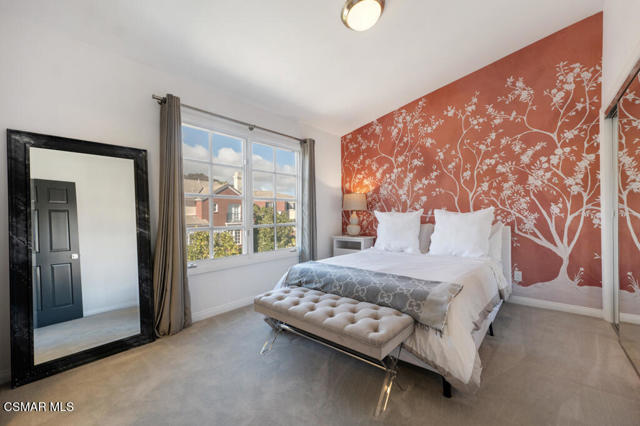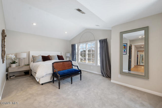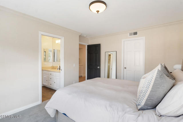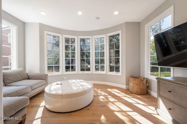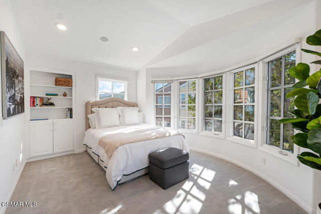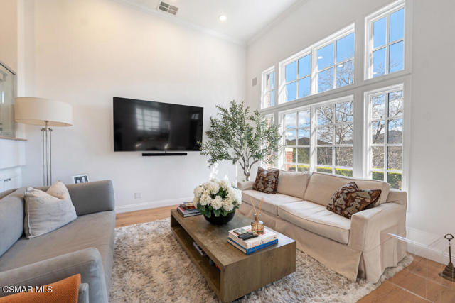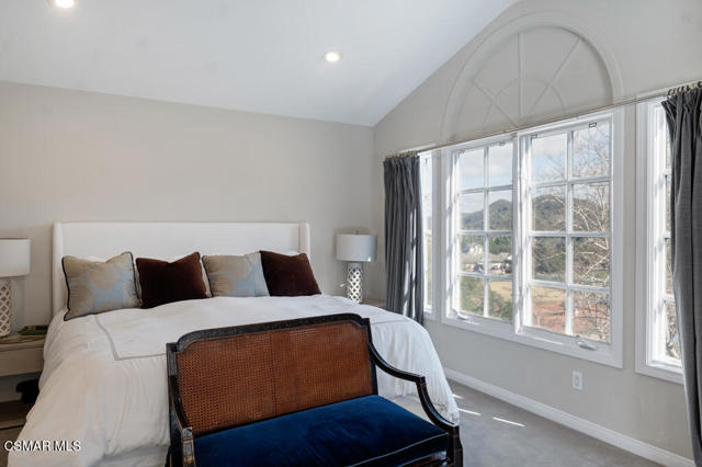 Fully Furnished at $16,995 and available June 1st. Pristine and fully renovated Trentwood townhouse inside the exclusive guard-gated community of Lake Sherwood. Situated on the coveted view side of the street, this home offers breathtaking panoramic views of the club, lake, and surrounding mountains.Please notice every detail, featuring French Oak wood flooring throughout and a sleek, all-white kitchen equipped with top-of-the-line stainless steel appliances. Stylish new lighting, modern LED fixtures, and designer finishes enhance the home's contemporary appeal. The bathrooms have been completely remodeled with the latest high-end styles.The spacious and well-designed floor plan includes four bedrooms, an office, a den, and a luxurious master retreat with a private sitting area. Three full baths provide ample space and convenience. The three-car garage, each with its own separate door, ensures easy access--no tandem parking here! Feels like a brand-new home!