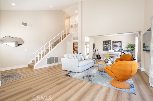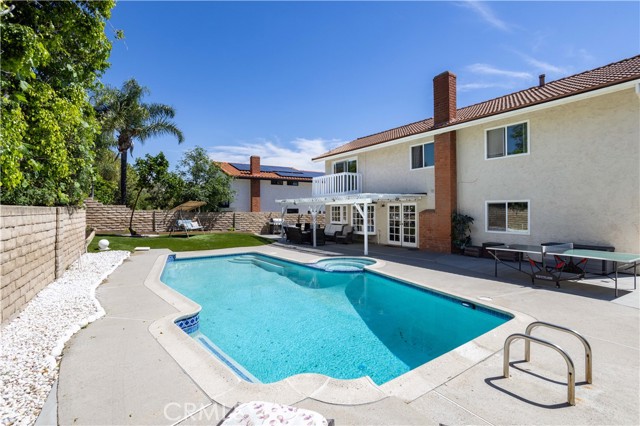 What if the Porter Ranch home you’ve been waiting for was tucked away on a quiet cul-de-sac in the Porter Valley Country Club neighborhood? If you’ve been thinking about moving to Porter Ranch and want space, flexibility, and a prime location, this 5 bedroom, 3 bathroom pool home with 2,494 sq ft offers a functional layout designed for everyday living and entertaining. Step inside to soaring ceilings and abundant natural light in the formal living room, creating an open and airy first impression. The adjacent dining room sits just off the living room and connects seamlessly to the rest of the home. The family room features a fireplace and French doors that open directly to the backyard, creating an ideal indoor-outdoor flow. The kitchen offers ample cabinet space, clean finishes, and a charming breakfast nook with a bay window overlooking the yard. The flexible floor plan includes a full bedroom and bathroom downstairs—ideal for guests, extended family, or a home office. Upstairs, you’ll find four additional bedrooms, including a spacious primary suite with private balcony access, a walk-in closet, and an updated ensuite bathroom featuring dual vanities and an oversized walk-in shower with glass enclosure. The secondary bedrooms are well-sized and offer versatility for a variety of needs. Additional highlights include an indoor laundry room and an owner-owned solar system for improved energy efficiency. Step outside to a private backyard featuring a pool, multiple seating areas, and a separate grass section—offering space to relax, entertain, or play. Located in a highly sought-after Porter Ranch neighborhood, this home is within close proximity to award-winning schools including Castlebay Lane Elementary, Robert Frost Middle School, and Granada Hills Charter High School. Enjoy nearby hiking trails, parks, The Vineyards shopping center, the Porter Ranch Farmers Market, dining, shopping, and convenient freeway access. If you’ve been searching for a Porter Ranch home for sale in the Porter Valley Country Club neighborhood with space, location, and functionality, this is a home you won’t want to miss.