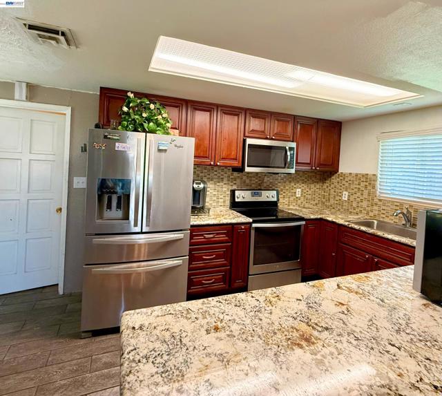Welcome home to this corner lot gem in a desirable El Dorado Heights neighborhood. A very charming home with 3 bedrooms 2 baths and 2 car garage nestled on a spacious corner lot with circular driveway. It features remodeled kitchen with breakfast counter, granite countertops, full backsplash, stainless-steel appliances, refrigerator and brand-new microwave. Adjacent to it is the dining area with sliding glass door towards the backyard. Modern hallway bathroom renovated recently. Spacious living room has wood burning fireplace with sliding glass door patio & recessed lighting. It is equipped with solar for lower energy bills, A/C, inside laundry, dual pane windows and laminated hardwood floors throughout. Conveniently located at nearby shopping plaza, restaurants, parks, schools, and easy freeway access. Don't miss the opportunity of owning this beautiful home!