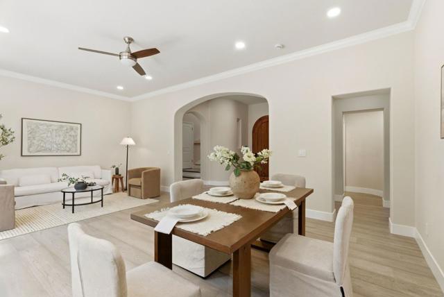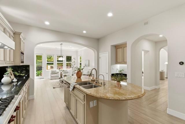 The highly sought-after Eagle Ridge floor plan featuring a ground-floor primary suite and private attached casita offers comfort and flexibility. This updated home showcases golf course views and extensive upgrades throughout. Recent improvements include updated flooring, interior paint, crown molding, window coverings, and designer lighting. Smart features include a Nest system, video doorbell, security cameras, surround sound pre-wiring, and ADT alarm system. The kitchen is ideal for everyday living and entertaining with a 6-burner gas cooktop, trash compactor, dishwasher and refrigerator, updated fixtures, and 2 newer RC drinking water filtration systems. The spacious primary suite includes a custom closet, integrated audio, remote blinds, updated fixtures, quiet exhaust fan, and spa-inspired baths with three sensor-activated Toto toilets. Additional upgrades include a Puronics water softener, 240V EV outlet, improved irrigation, refreshed iron gates, and updated bath cabinetry. Enjoy outdoor living with a private courtyard, fire pit, and built-in BBQ - perfect for entertaining. Ideally located near the Eagle Ridge clubhouse, golf course, parks, trails, playgrounds, and summer concerts, this home offers resort-style living in one of Gilroy's premier communities.