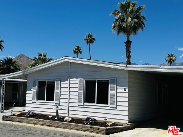 Welcome to 8 Calle Abajo - your new home located in Palm Springs' most coveted rent controlled manufactured home community. This 1,484 square foot, 2 bedroom / 2 bath triple-wide is the one you've been waiting for. It features a formal living & dining room, updated kitchen, large great room, laundry room, guest bedroom & bath, primary bedroom with en-suite bath, private backyard, two covered patios, double-pane windows & sliders, central air conditioning, evaporative cooler, carport, utility shed... the list goes on and on. Residents of the park enjoy a serene setting, community clubhouse with planned activities, onsite management, three community pools, walking paths & common green spaces, and easy access from within the park to the new CV Link! Palm Springs View Estates is a 55+, rent controlled community. Low monthly lot rent includes water, sewer and trash. See park management for details. Schedule your tour today. This one won't last!