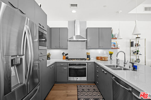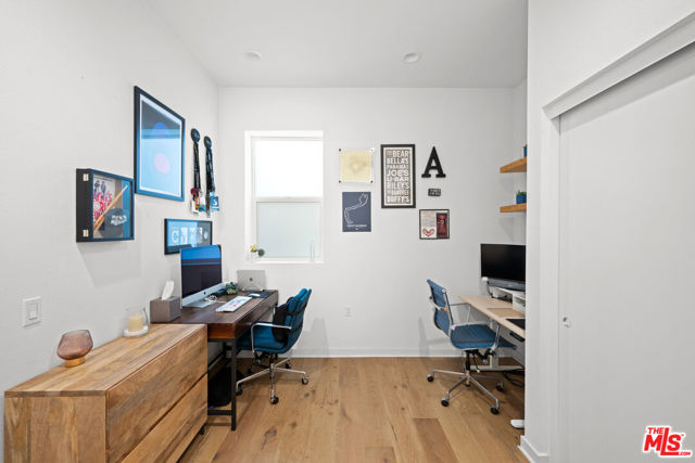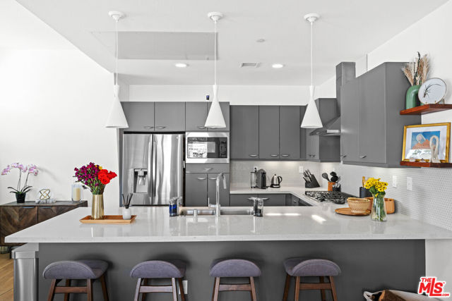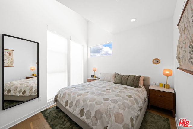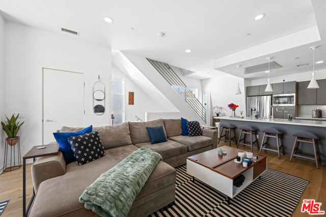 Located in the vibrant heart of the NoHo Arts District, this stylish, light-filled contemporary residence offers the perfect blend of design, functionality, and urban convenience. Spanning three levels of thoughtfully designed living space, plus a large private rooftop deck, this home delivers modern living at its best. The second level serves as the main living hub, featuring 9ft ceilings and open-concept layout ideal for both everyday living and entertaining. A sleek gourmet kitchen anchors the space, complete with counter seating, custom cabinetry, designer tile, and a powder room, all complemented by warm oak plank flooring. Upstairs, two spacious ensuite bedrooms provide comfort and privacy with custom motorized blinds. While a versatile ground-floor bedroom with its own ensuite bath is perfect for guests, a home office, or creative studio. Private gated driveway and EV charging capabilities in garage. Gas hookups on patio and roof, perfect for grilling. Move-in ready and impeccably finished throughout, this home is just moments from some of the area's best dining, art galleries, and entertainment, with convenient access to major freeways for an easy commute.