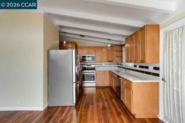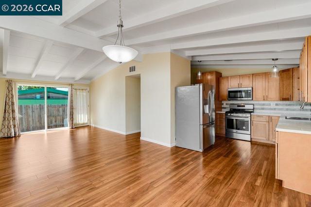 Welcome to this beautifully updated Tara Hills home, ideally located on a quiet street with a large, level lot. This 3-bedroom, 2-bath residence features newer interior paint, stylish wood-look flooring, and stainless steel appliances. A large private gate creates a charming entrance to the property, while the detached garage adds extra functionality. The side gate offers easy access to the expansive backyard, presenting endless possibilities, including ADU potential. Conveniently located near shopping, dining, and major highways, this home combines privacy, versatility, and accessibility.
