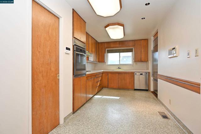 Tucked away at the end of a quiet court in popular El Sobrante neighborhood, this inviting 3 BR home offers a perfect blend of comfort, space, and privacy. Meticulously maintained by the same family since it was built in 1967. Features include a formal dining room with convenient closet storage that provides an elegant setting for meals and special occasions, while the separate living room showcases views from the picture window and a fireplace, adding warmth and charm. The spacious cook's kitchen has a Sub-Zero refrigerator, Miele dishwasher, pantry, and plenty of room for a table. Designed for both everyday living and entertaining, the expansive family room features a full-size bar, ½ bath, and a cozy fireplace, creating an ideal gathering space for friends and family. The generously sized primary suite offers a peaceful retreat, complimented by two additional bedrooms connected by a Jack and Jill bathroom. An oversized garage includes a dedicated workshop area along with huge pull-down attic storage, ½ bath, and deep laundry sink. Step outside to a private, landscaped yard with fountain and shed - perfect for relaxing, entertaining, or simply enjoying the tranquility of the setting. Dual pane windows, central heat and air conditioning. Excellent location close to schools and shopping with an easy commute to Oakland and SF!