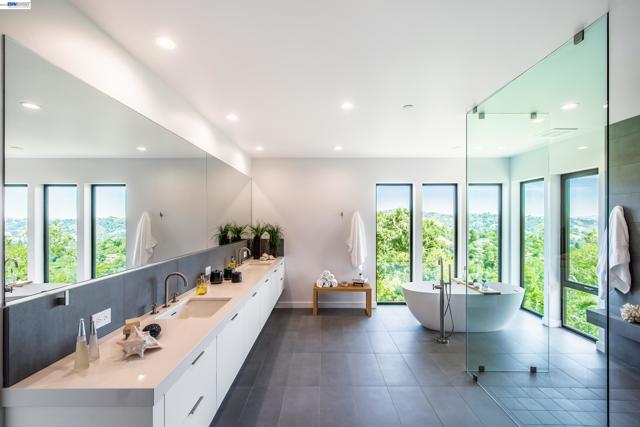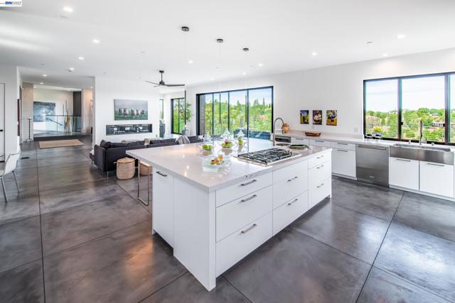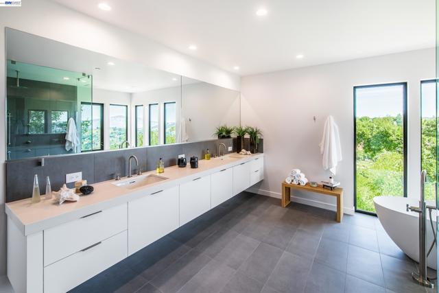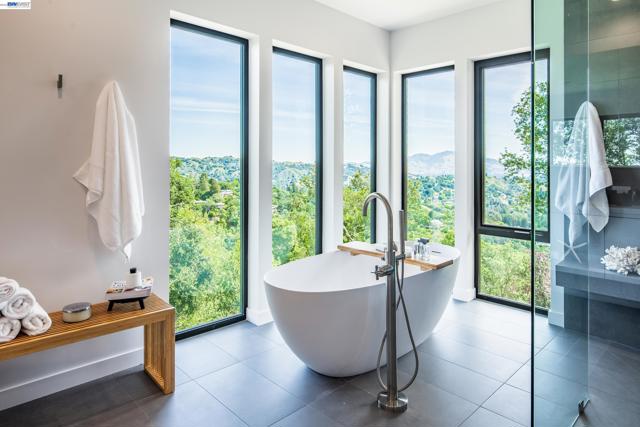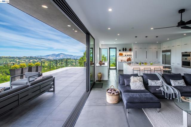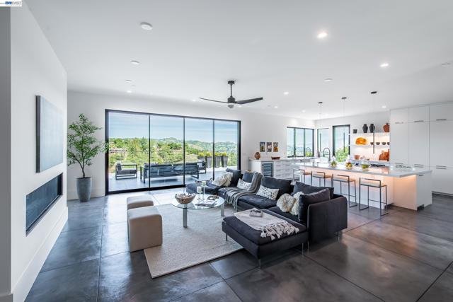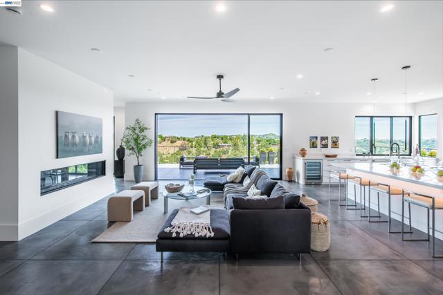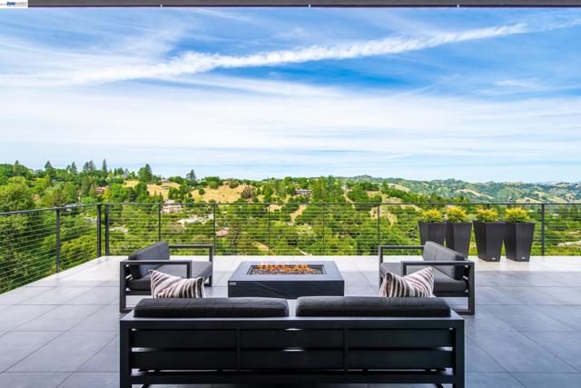 Experience modern luxury in this newly built Hillside Homes masterpiece, where elevated design meets breathtaking Mt. Diablo views. This exceptional residence offers five bedrooms, four-and-a-half bathrooms, and 6,045 square feet of beautifully designed living space, complete with a spacious bonus room, an oversized 800-square-foot three-car garage, and a 1,200-square-foot deck showcasing panoramic vistas. Designed with a contemporary open-concept layout, the home features walls of glass that invite abundant natural light, seamlessly blending indoor and outdoor living to create a bright, airy ambiance. The luxurious primary suite is a true retreat, perfectly positioned to capture stunning views of Mt. Diablo. It includes a generous walk-in closet and a spa-inspired bathroom with a European-style shower featuring multiple shower heads, a soaking tub overlooking the landscape, and a dual-sink vanity. End each day on the view deck, gathered around the firepit as the evening light settles over the surrounding hills—an ideal setting for both quiet moments and memorable entertaining.