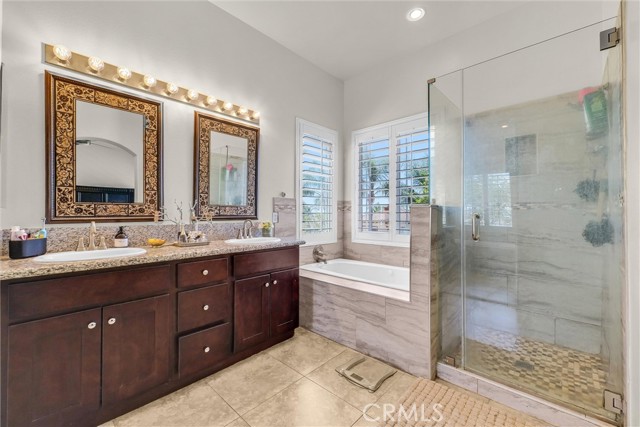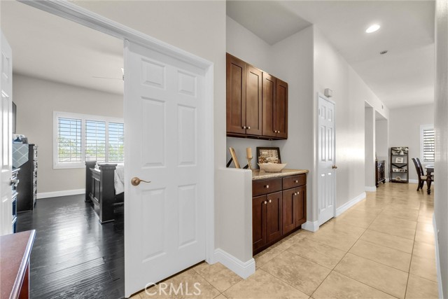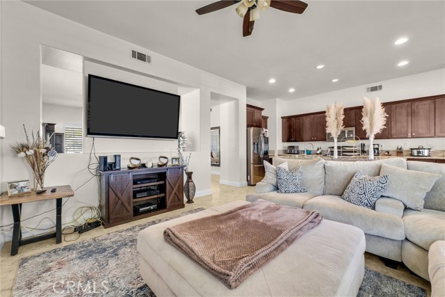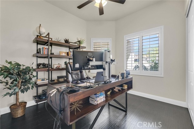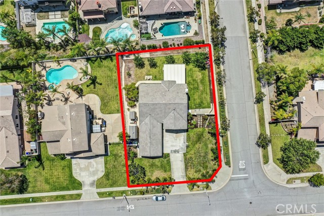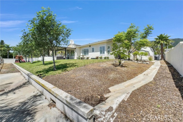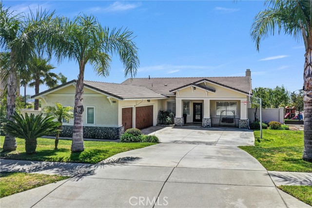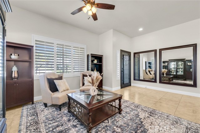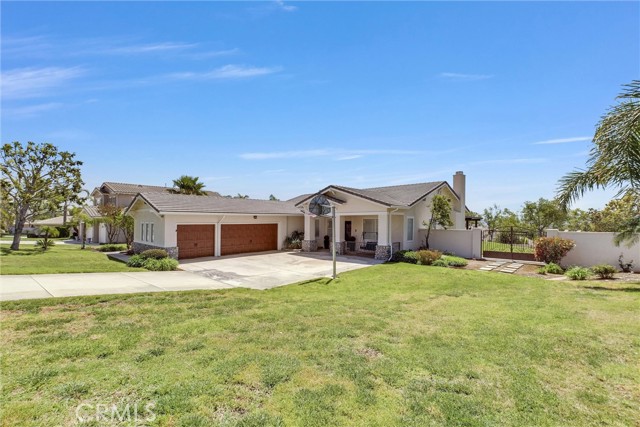 Welcome Home. This beautifully maintained single-story home features a spacious 3-car garage sits on a massive 16,500 square foot corner lot. The freshly painted exterior makes a stunning first impression along with its well-manicured yard accented with a variety of gorgeous sago and other palm trees. A beautiful entry door welcomes you into over 2,000 square feet of elegant living space. A versatile fourth room offers the ideal setting for a 4th bedroom, office, or library, giving you the flexibility to create the perfect space for your needs. Inside, you'll find a formal living room and dining area with soaring 10-foot ceilings that add an air of grandeur. Plantation shutters throughout. The home is tastefully designed with 20x20 porcelain tile and warm hardwood floors, freshly painted neutral tone with upgraded baseboards, creating a cohesive and sophisticated atmosphere throughout. The open-concept kitchen is the heart of the home, featuring a center island with granite countertops, stainless steel appliances well equipped with beautiful chestnut-colored cabinets. The kitchen flows seamlessly into the family room, complete with a cozy gas fireplace, making it ideal for both daily living and entertaining. Double doors lead to the spacious primary bedroom, which boasts a ceiling fan and high ceilings with a backyard view. The primary bath offers dual sinks, a soaking tub, a separate walk-in shower, and finishes that create a spa-like retreat. The two additional generously sized bedrooms are thoughtfully designed with ceiling fans adding both comfort and style. The home also features an indoor laundry room with built-in cabinets for extra storage. Step outside to the peaceful backyard, where you can relax and unwind. Large solid roof alumawood patio cover with lighting, plenty of concrete patio perfect for those outdoor events. Backyard lawn area, and two convenient storage sheds/dog kennels, creating an ideal setting for both relaxation and entertaining. With potential for RV parking and plenty of space if you decide on a swimming pool. The home is close to shopping, dining, entertainment, Victoria Garden Mall, Ontario Mills Mall, parks, Etiwanda Falls Hiking Trail, and easy access to the freeway 210 and I -15. Located in the highly sought-after Ridgeview Estates of Rancho Cucamonga, this home has everything you could want and more. LOW tax, and no HOA, it’s an exceptional opportunity you won’t want to miss.