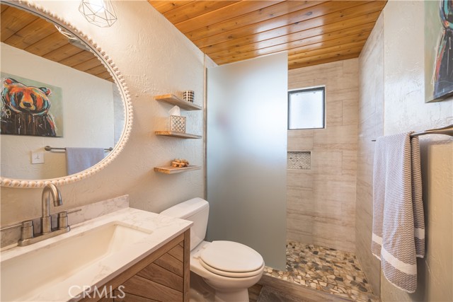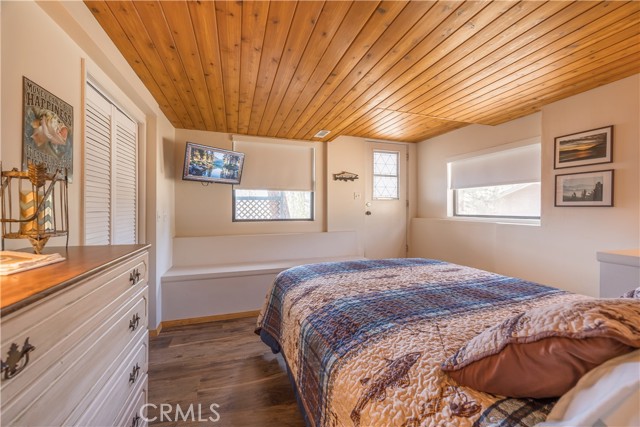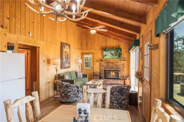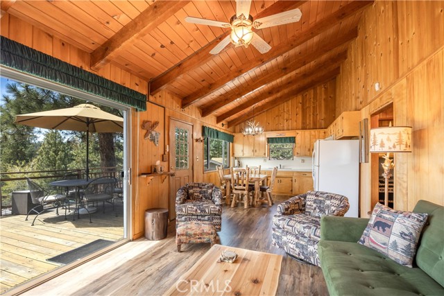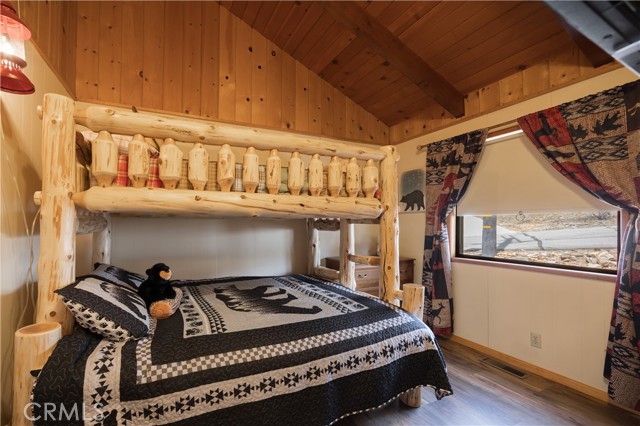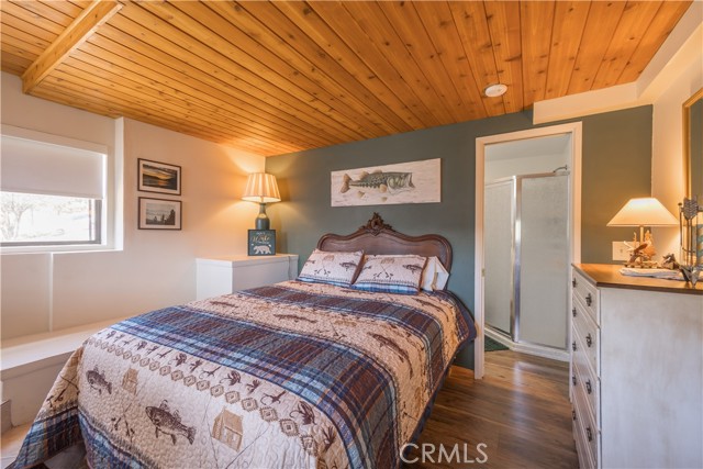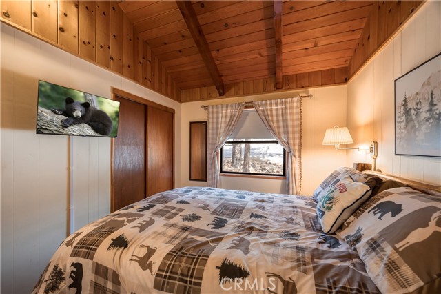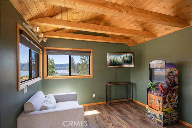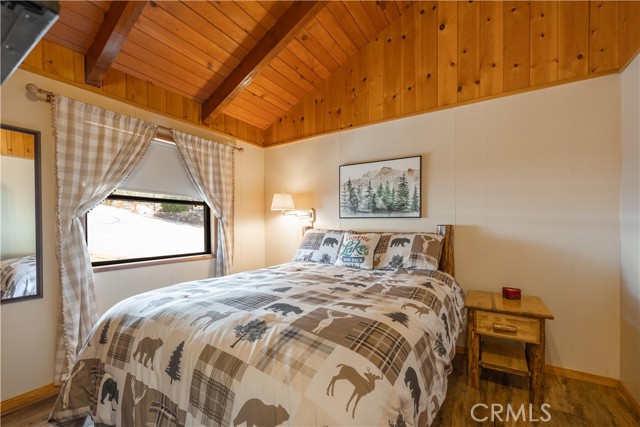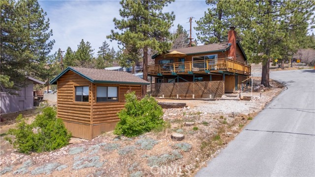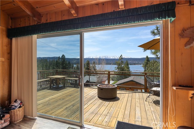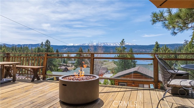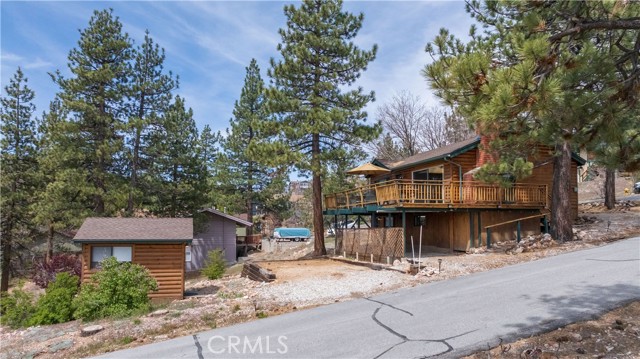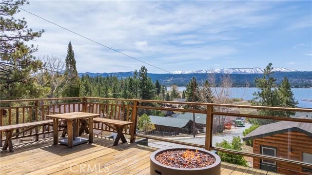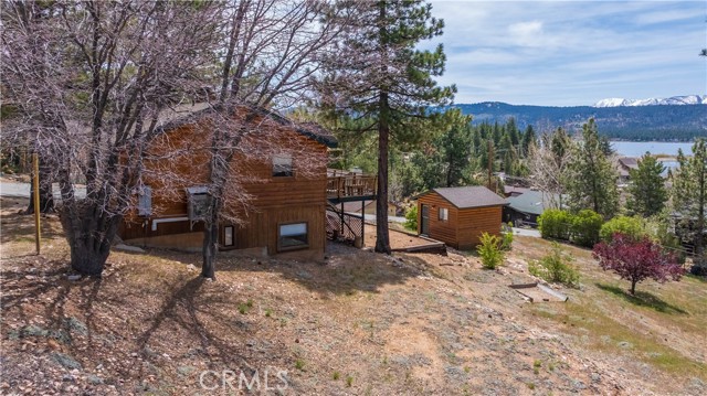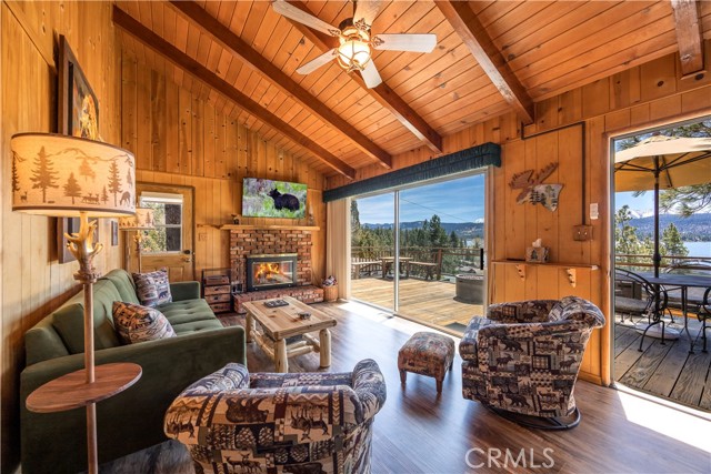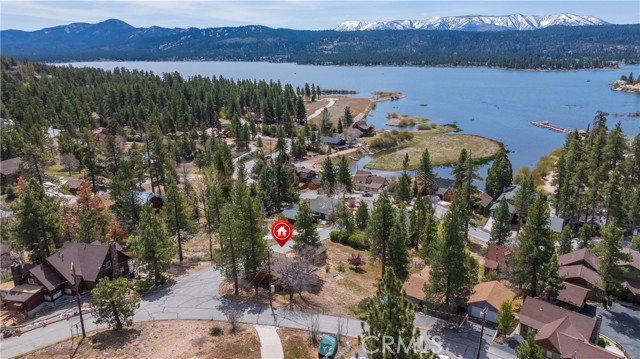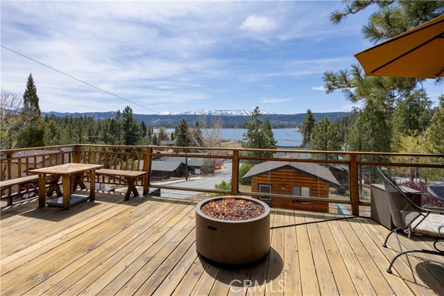 Escape to your own private retreat with this stunning cabin featuring breathtaking lake views and snow-capped San Gorgonio Mountain scenery. From the moment you step inside, you’ll be captivated by the natural light and panoramic views visible from the living room, kitchen, and expansive deck—perfect for relaxing or entertaining. Take a short walk to the lake and nearby Captain John's Marina- rent a boat, launch a kayak, or enjoy a day of fishing. The home offers a private downstairs bedroom and bathroom with separate entry, making it ideal for guests, extended family, or potential rental use. A separate game room provides additional flexible space, ideal for a playroom, second lounge area, or a bunkhouse. Recent upgrades throughout include a new AC unit, updated flooring, washer and dryer connections, and beautiful tongue-and-groove ceilings that enhance the cabin’s warm, rustic charm. The main bathroom has been completely remodeled, blending modern finishes with timeless style. Whether you’re enjoying peaceful mornings on the deck or cozy evenings indoors, this home delivers the perfect balance of comfort and mountain living. With its unique layout, thoughtful upgrades, and unforgettable views, this cabin is a rare opportunity you won’t want to miss. Additionally, included is architectural plans for a custom built 2 story home addition. Plans can be provided. Please see last picture.