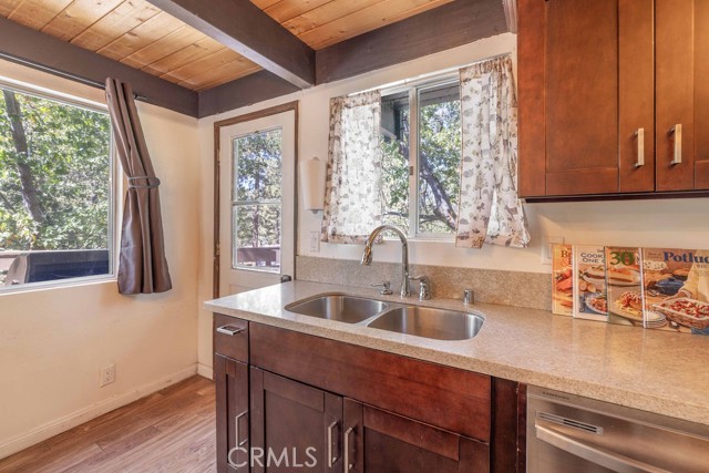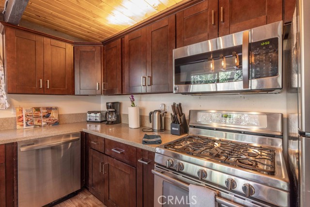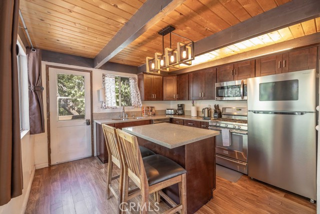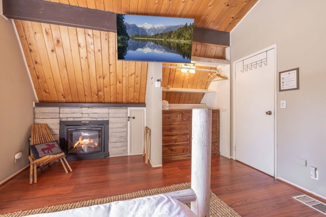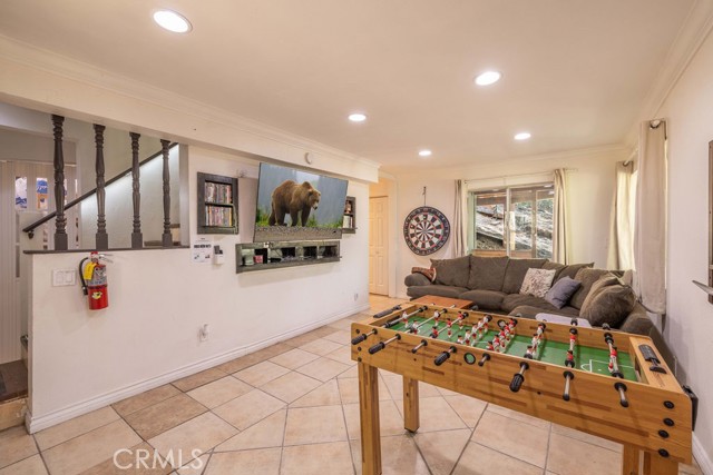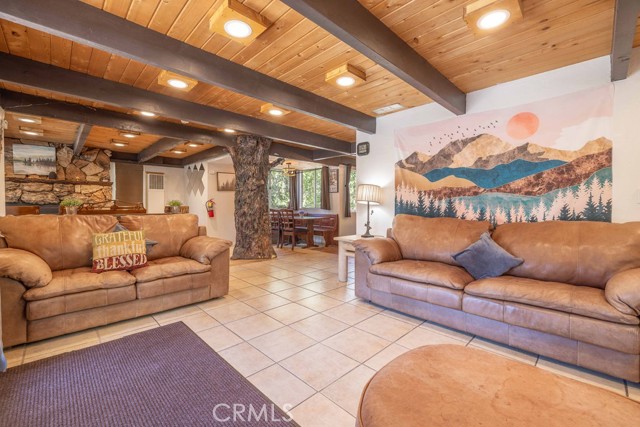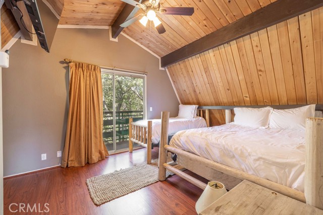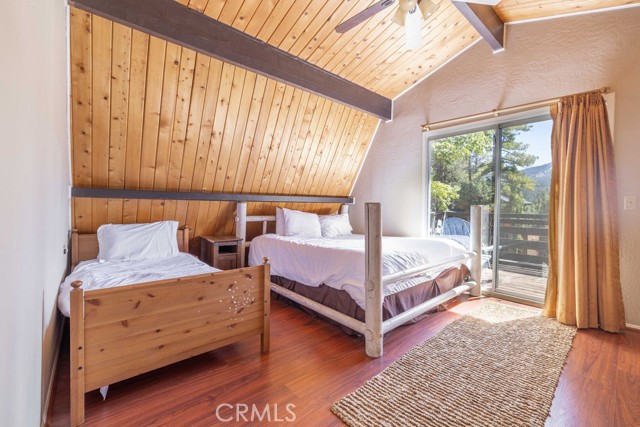 This custom double gambrel home is the perfect mountain retreat, located near the highly desirable Moonridge Corridor, minutes from Big Bear's top attractions! With over 2,000 sq. ft. of living space, this tri-level cabin offers 4 bedrooms (including the game room), 3 bathrooms, and is fully furnished, move-in ready for ski season! The home has spectacular views, a new hot tub, and wraparound decking to enjoy the outdoors. The upgraded kitchen features quartz countertops, stainless steel appliances, and an island that opens to the cozy living area. Step out onto any of the 3 balconies from any of the bedrooms for even better views! The large game room offers ample entertainment for guests, with room for a pool table or home theater setup. Enjoy recent improvements to decks and roof, patio, flooring, walls, plumbing, paint. Upgrades include new electrical items, fixtures, 2 electric fireplaces, and EV charger. Equipped with 4 smart TVs, a security system, and a new electrical sub-panel for the spa. The spacious driveway offers plenty of parking, and the usable yard is perfect for hanging swings or hammocks. With its smart home features and energy-efficient updates, this home combines rustic charm with modern convenience. Located near both ski resorts, Big Bear Zoo, golf course, Dank Donuts, and Moonridge Coffee, this home is priced to sell! Don’t miss out on this turn-key mountain escape, ideal for full-time living, weekend getaways, or as a sweet vacation rental investment!