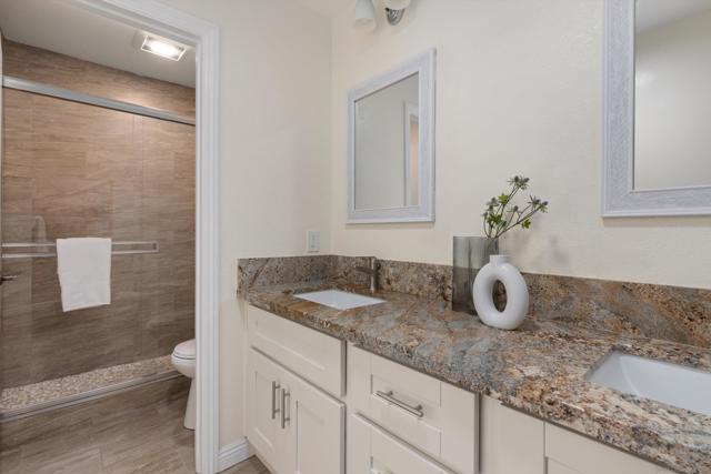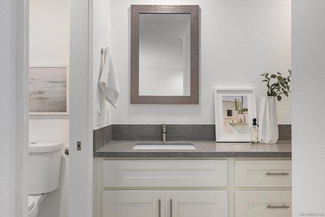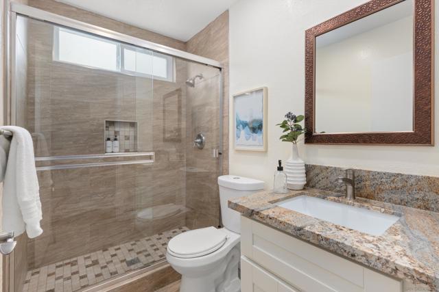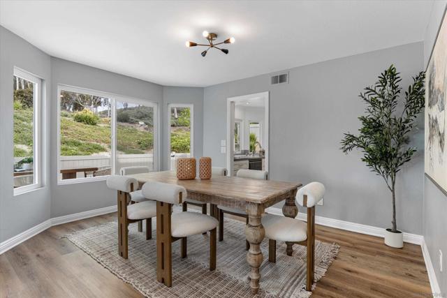 Tucked away on a serene cul-de-sac in the desirable Pacific Ranch neighborhood of Encinitas, this beautifully updated, five-bedroom, four-bathroom residence offers a spacious, bright floor plan in an ideal location. The kitchen is a place for cozy comfort with a quiet breakfast nook or seating area attached. The living room’s wide open space with vaulted ceilings leaves plenty of room to spread out, and opens up to the private back yard with views of surrounding greenery. The layout is multi-generational friendly with a bedroom and a full bath on the main level. Upstairs, the bathrooms have been tastefully updated to reflect the home's clean, warm aesthetic, and the layout is designed for effortless everyday living. Outside the front door, Pacific Ranch delivers the kind of community lifestyle that's hard to find. A community pool, spa, tennis courts, and park are all within walking distance — rare amenities that elevate daily life. Moonlight Beach, one of Encinitas' most beloved stretches of coastline, is less than 10 minutes away. Top-rated Encinitas Union School District schools, Cottonwood Creek Park, the Encinitas Community Park, and the shops and restaurants along El Camino Real and Encinitas Boulevard are all just minutes from your door. With the major updates already done and a location that puts the best of coastal North County living within easy reach, 1842 Bel Air Terrace is truly move-in ready.