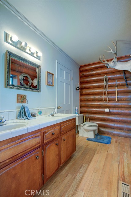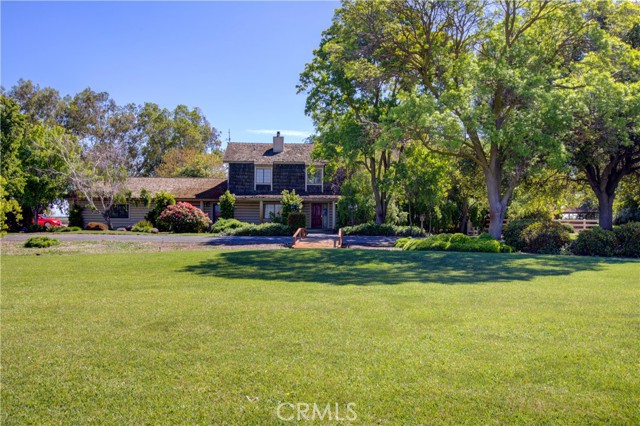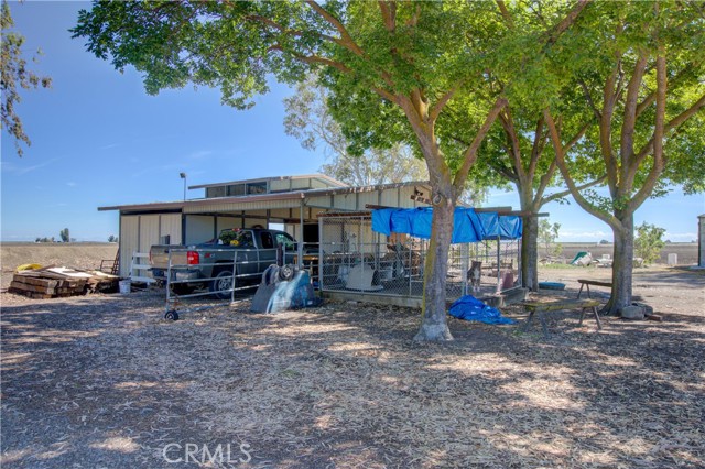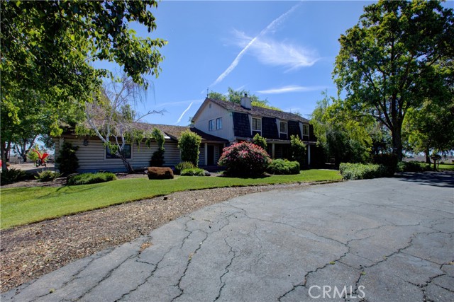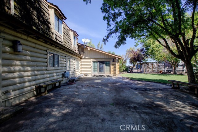 Spacious Ranch-Style Home on 2.6+ Acres with dual primary suites, which provide flexible living arrangements that could accommodate multi-generational living. This custom two-story ranch-style home offers 4 bedrooms, 3.5 baths, and a thoughtfully designed layout. This is a 2-story home with a 3-car garage, all complemented by mature landscaping, a lush lawn, and an efficient automatic sprinkler and drip system. Inside, the open-concept family room creates a warm and inviting atmosphere, highlighted by rich log-style interior walls that bring a true rustic charm, complete with a wood-burning stove fireplace perfect for relaxing. A formal dining area with rich wood flooring and elegant French doors provides a refined space. The spacious kitchen is centrally located, which is conducive to a busy family's lifestyle. A well-equipped kitchen with an extensive amount of cabinet storage provides efficiency and functionality. A large downstairs laundry room features wood floors, extra cabinets, a refrigerator, and a sink, as well as a generous storage closet. This laundry room is conveniently located with outside access. An additional laundry room with extra cabinets is conveniently located upstairs. Two bedrooms are located upstairs. The upstairs primary suite is spacious with a large walk-through walk-in closet featuring built-ins. This master suite features a spa-like master bathroom with a dual shower-head. The downstairs master suite is also spacious, with access to the back patio by a set of French doors. The bathroom for this second primary suite features another spa-like experience with a soaking jetted tub. Step outside to a fully equipped backyard designed for both relaxation and productivity. Enjoy the landscaped grounds with a gazebo, shop, shed, chicken coop, and the convenience of an outdoor bathroom. The property is supported by impressive utility features, including a domestic well, an Ag well, two solar systems, and multi-unit central HVAC. Located in a serene rural setting while still offering convenient access to nearby amenities and major routes, this property delivers the best of country living with modern comforts. A rare opportunity to own a versatile and well-equipped estate in Dos Palos.