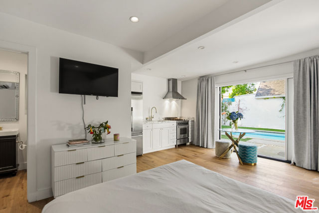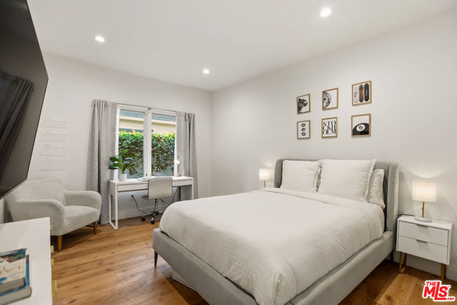 Fully furnished and turnkey top-floor residence available for short-term lease in the heart of Melrose Village. This beautifully appointed condominium offers a seamless blend of comfort and modern style, ideal for those seeking a move-in-ready living experience in one of Los Angeles' most vibrant neighborhoods. The open-concept layout is filled with natural light and features a spacious living and dining area designed for both relaxation and entertaining. Thoughtfully furnished with contemporary pieces, the interior creates a warm yet elevated atmosphere. The kitchen is well-equipped with ample cabinetry and essential appliances, perfect for everyday living or extended stays. The generously sized bedroom provides a tranquil retreat, complemented by a well-maintained bathroom with clean, modern finishes. Additional amenities include in-unit laundry, central air and heat, secured parking, and controlled building access. Situated just moments from Melrose Avenue's renowned shopping, dining, and entertainment, this prime location offers convenient access to West Hollywood, Beverly Hills, and nearby hotspots. Available for short term lease at $1,400/night.