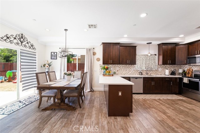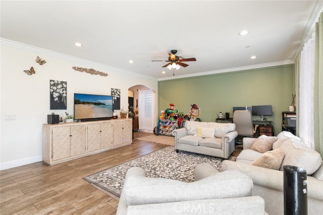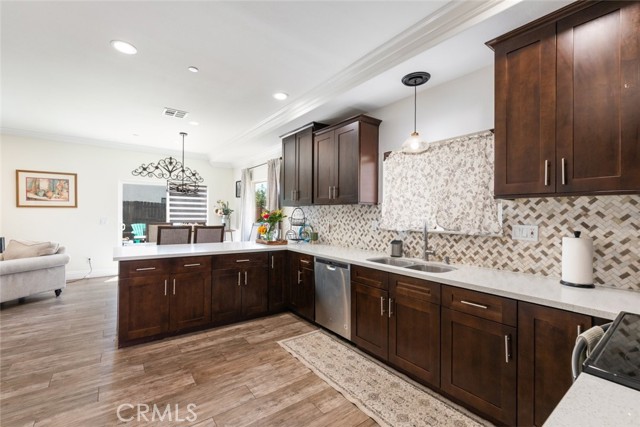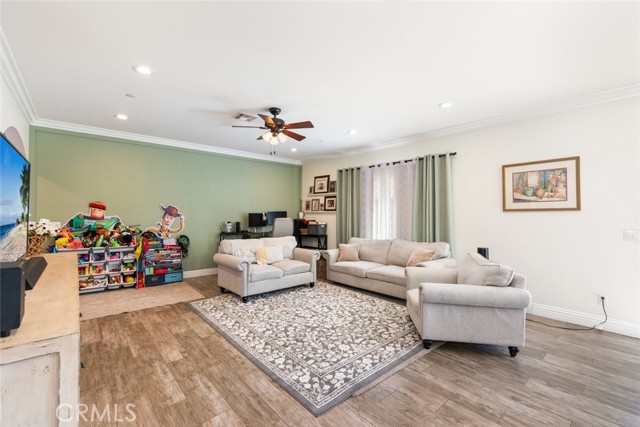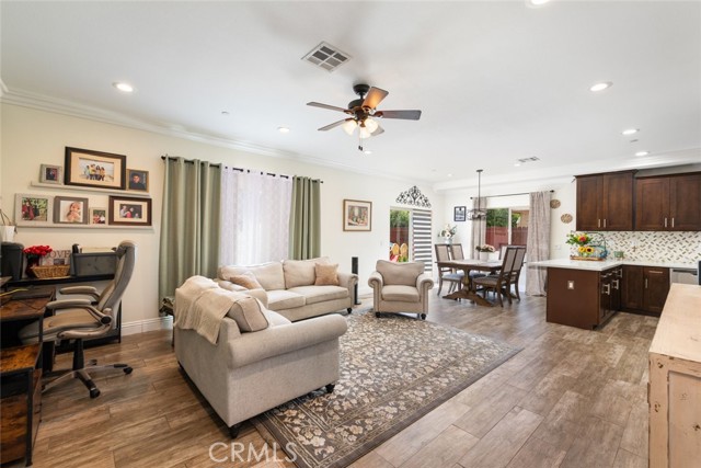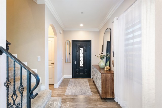 The details in this home truly standout! The wide isle entry boasts a great welcoming space. Beyond that, the home provides an exceptional open floor-plan and the beauty of natural light from large windows completes nearly every room. Framed in luxury crown molding throughout the entire home, adds the greatest eye-catching finishes. The oversize kitchen provides plenty of counter-space, cabinets and a walk-in pantry completes this area. Unique high ceilings really stand out as well. All 3 bedrooms are upstairs. It's impossible to miss the Primary Suite bedroom.. beyond generous in size and complete with a spacious bathroom and walk-in tiled shower. Don't lose sight of the hosting ability that this home provides!! A beautiful landscaped front-yard and a large back-yard that is prepped for your future enhancements to your liking. A desirable location close to shops, schools, eateries, and freeway access. A ideal opportunity you don't want to miss! Come see it all for yourself!