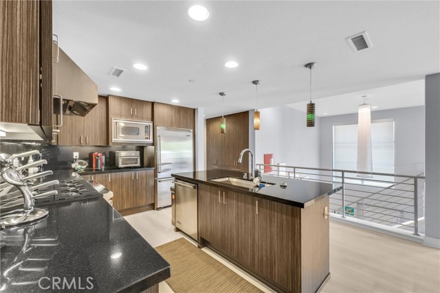 Beautiful former model home with an exceptional level of upgrades, ideally situated in the highly desirable Central Park West community, directly across from the park and common area. This premium end-unit residence offers enhanced privacy with fewer shared walls and an abundance of natural light. The first floor features a private suite, ideal for guests, a home office, or multigenerational living, along with convenient access to two attached garages. Upstairs, the second level showcases a spacious open-concept great room designed for modern living, seamlessly flowing to a wraparound balcony that creates an inviting indoor-outdoor lifestyle. The chef-inspired kitchen is a standout, complete with high-end finishes and premium appliances, perfect for both everyday use and entertaining. Owner will maintain the water softener service at the property. Original owner currently lives at the property. This home has never been a rental before. It offers exceptional flexibility and can be rented fully furnished or short-term rental at $6,800/month. Residents of Central Park West enjoy resort-style amenities including pools, spa, Community area, fitness centers, and beautifully maintained grounds. Located in Irvine’s sought-after Airport Area, the home is just minutes from top dining, shopping, and fitness destinations, as well as major freeways—providing unmatched convenience for commuting throughout Orange County.