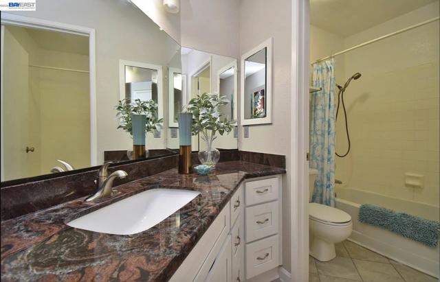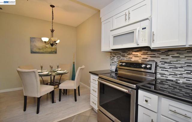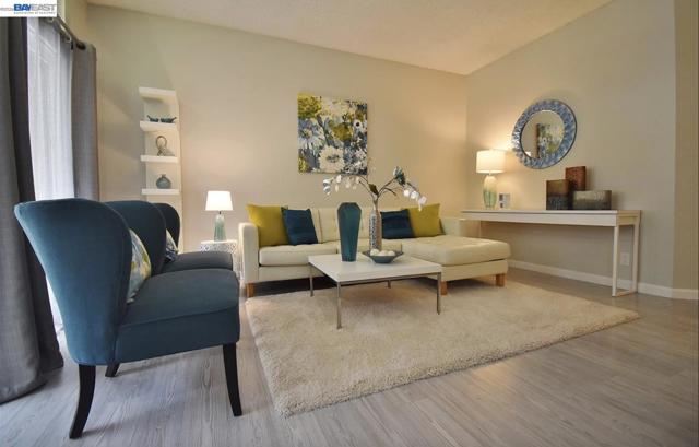 Located in a secure, gated community, this absolutely charming, remodeled ground-floor condo is move-in ready and offers easy, step-free access. The kitchen was beautifully updated in 2017 with white cabinetry, granite countertops, decorative tile backsplash, tile flooring, and stainless steel appliances. Both bathrooms were also remodeled in 2017 with updated tile flooring and stylish granite and cultured marble vanities. Additional upgrades include laminate flooring throughout and a new furnace installed in 2017. Enjoy indoor-outdoor living with a private front patio featuring a storage closet, as well as a rear patio accessible from the primary bedroom. A stacking washer and dryer are included and conveyed “as is.”The HOA allows rentals, making this a great opportunity for both homeowners and investors. Conveniently located within walking distance to shopping, dining, and entertainment, and offering easy access to I-880, the Dumbarton Bridge, and BART for commuters.