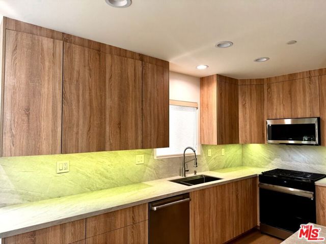 Beautifully designed and fully remodeled, this exceptional residence is ideally situated on one of West Hollywood's most desirable streets. This spacious and light-filled home offers an expansive layout with defined living and dining areas, highlighted by a fireplace that adds warmth and character.The chef's kitchen is thoughtfully appointed with top-of-the-line appliances and premium finishes, perfect for both everyday living and entertaining. Additional features include convenient side-by-side laundry, generously sized bedrooms, walk in closets and spa-inspired bathrooms. and storage space **Photos are virtually staged**