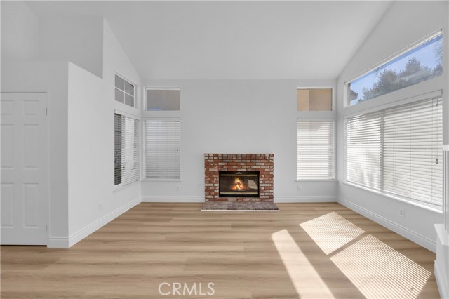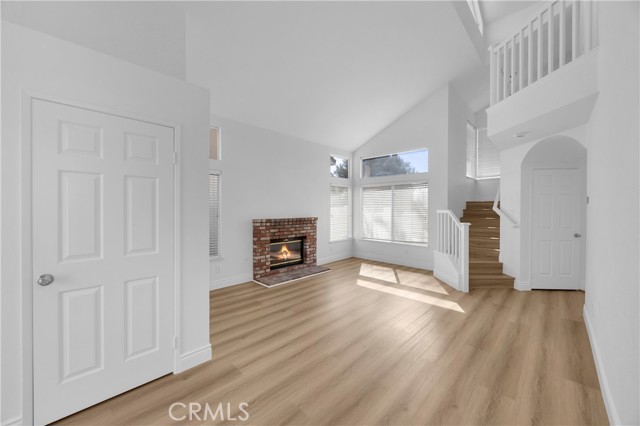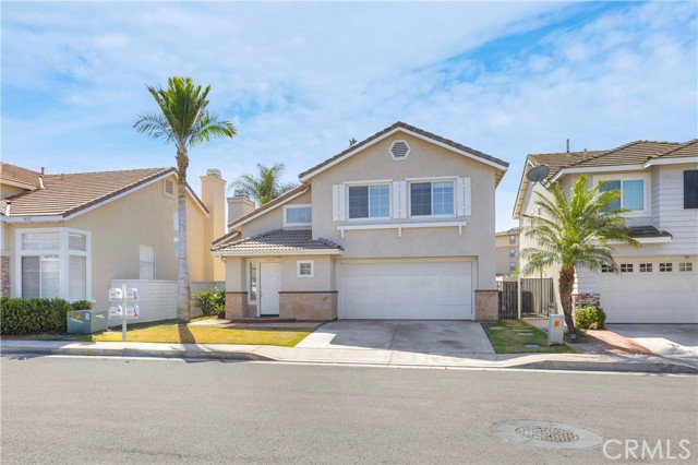 Welcome to the gated community of Sycamore Crossings, complete with an association pool and beautifully maintained grounds. This inviting home offers an excellent floorplan featuring 3 bedrooms, 2.5 bathrooms, approximately 1,400 square feet of living space, and a 2-car attached garage. Upgrades and amenities include luxury vinyl plank flooring, vaulted ceilings, a brick fireplace in the family room, and a beautifully remodeled kitchen with quartz countertops, stainless steel appliances, brushed gold hardware, and tile flooring. The kitchen overlooks the backyard, which features a covered patio perfect for outdoor dining and entertaining. Upstairs you will find three spacious bedrooms, including a primary suite with cathedral ceilings, a walk-in closet, and an upgraded bathroom complete with dual sinks, newer fixtures, a soaking tub, and a travertine-walled shower. Additional highlights include upstairs laundry and a convenient location near shopping, dining, and local amenities.