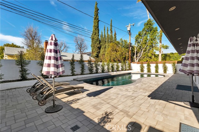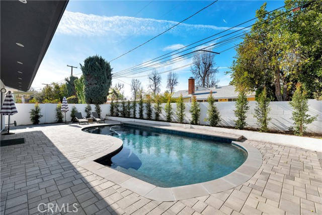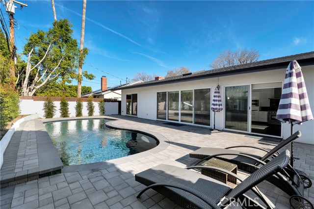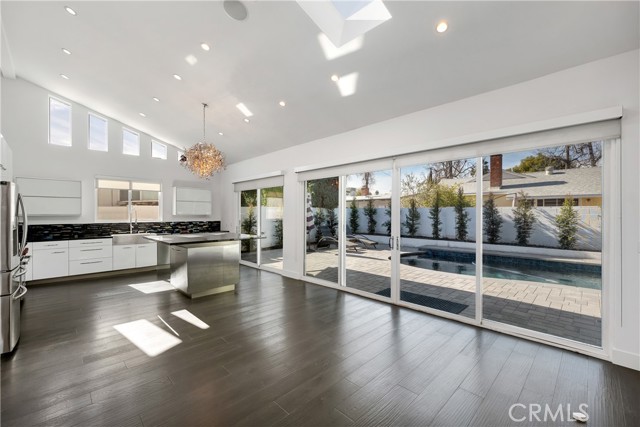 This Beautiful Contemporary Pool Home was Completely Rebuilt. Inside, find Expansive Living Spaces accented with 18 foot high ceilings, 8 foot high doorways, Solar Tubes and Architectural Skylights. The Open Concept Living Room features a Gas Fireplace with Fire Glass and a Picturesque View of the Relaxing Rear Yard. Sleek and Functional Kitchen includes Custom Cabinets, Stone Counters, High-End Appliances and Oversized Center Island with Elegant Chandelier. Vinyl Sliders Open to Rear Yard from Living Areas for Indoor/Outdoor Entertaining. Master Suite features Private Bath, Walk-in Closet and Glass Doors leading to Pool and Patio. Master Bathroom includes a Tub and Walk-in Shower w/Glass Enclosure. Secondary Bedrooms and Baths have been tastefully updated with Current Colors & Décor. Individual Laundry Room with Washer & Dryer. Entertainer's Yard features New Hardscape Patio Areas, New Landscaping, New Vinyl Fencing and Newly Refinished Pebble Tec Pool. Perfect for BBQs, Outdoor Dining, Lounging or Pool Parties. Custom Shades for Windows and Doors, Recessed Lights and Built-in Speakers. Central Air/Heat, Copper Plumbing, Dual Pane Vinyl Windows. Double Garage with Direct Access and Door Opener. Walk to Park for Shaded Playground, Community Center, Tennis and Basketball or Take the Bike Paths to Lovely Lake Balboa. Just minutes from 101/405 Freeways, Shopping and Restaurants. Award Winning Encino Elementary
