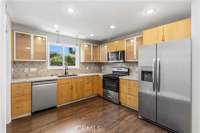 Beautifully updated home in a highly sought-after, award-winning school district, offering 3 bedrooms plus a versatile bonus room—ideal for an office, guest room, or formal dining space--plus 2 bathrooms, along with a private pool and spa. Bright and inviting, it showcases wood flooring, a cozy fireplace, and a seamless blend of style, comfort, and functionality. Renovated in 2023, the kitchen and bathrooms feature updated appliances and modern finishes. The kitchen opens to the dining and living areas, creating a natural, connected flow that’s ideal for both everyday living and entertaining. French doors lead to a flexible bonus room with the second bathroom conveniently located just off this space. There is also a dedicated laundry room. The private backyard offers a true retreat, complete with a pool, spa, covered patio, and wood deck—perfect for relaxing or hosting. Solar panels help reduce electricity costs and complete the picture of this wonderful home. Additional upgrades include a new HVAC system, Ecobee smart thermostat, tankless water heater, and dual-pane windows. Ideally located near Trader Joe’s, Sprouts, Ralphs, Target, Home Depot, Walmart, and 24 Hour Fitness, this home combines comfort, convenience, and location in a desirable West Hills neighborhood.