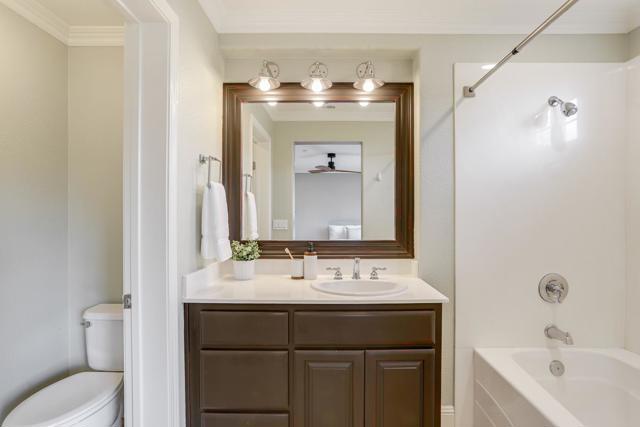 Experience this stunning townhome in the coveted Rivermark community. This bright and air home combines an open-concept kitchen with an expansive dining area, a versatile study alcove, and living area. The kitchen boasts a massive island with integrated power, granite countertops, premium stainless appliances, and maple cabinetry. The sun-drenched living room features a cozy fireplace and sliding doors to a private front patio. Upstairs, dual master suites feature generous walk-in closets and impeccably styled en-suite bathrooms. The primary suite is a true retreat with a large soaking tub and separate stall shower. Meticulous attention to detail is evident in the gorgeous hardwood flooring, elegant crown molding, wainscot panel, and modern recessed lighting. Practical amenities include Milgard energy-efficient dual-pane windows, central HVAC (heating and cooling), and a dedicated upstairs laundry room. The Rivermark community is a master planned community within walking distance of Rivermark Plazas shopping and dining, the city library, 2 city parks, and Don Callejon School K-8 school. This home also offers access to top-rated Santa Clara schools and is near major tech hubs. The perfect balance of luxury, convenience, and community
