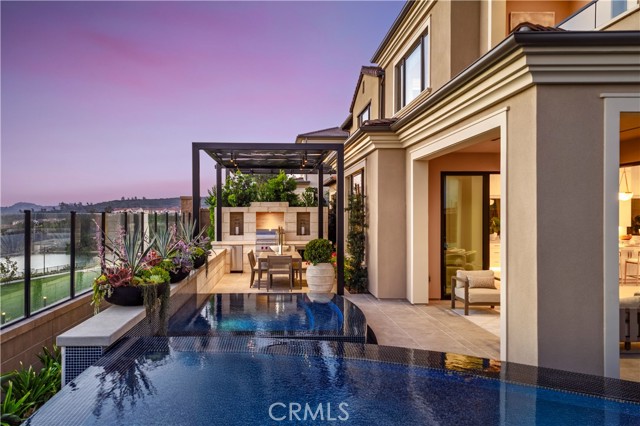 Welcome to Pinnacle at The Summit at Orchard Hills, a new community located in the City of Irvine, which is close to Irvine Spectrum and Irvine and Tustin Marketplaces as well as near shopping, entertainment, and recreation. Homesite 98 is a new construction home that is situated on a corner lot and provides amazing views of the Reservoir and city lights. The Huxlee floorplan features 5 bedrooms, with 5 1/2 bathrooms, and is 4,608 sq. ft, with a 2-car garage. Upon entering the home, the home features a floating staircase and open floorplan, the kitchen features an impressive, large kitchen island, Wolf stainless steel appliances, 48’ Subzero built-in refrigerator, and prep kitchen with appliances. The tranquil primary bedroom features a retreat with a spa inspired bathroom and primary suite deck. The large secondary bedrooms have their own bathrooms. The rear yard features amazing views and large enough to accommodate a pool and spa. The community amenities include a guard-gated entry and a community clubhouse with pool and spa. Homesite 98, has an estimated closing in Winter of 2026. Photos provided are of the model home, actual home is under construction.