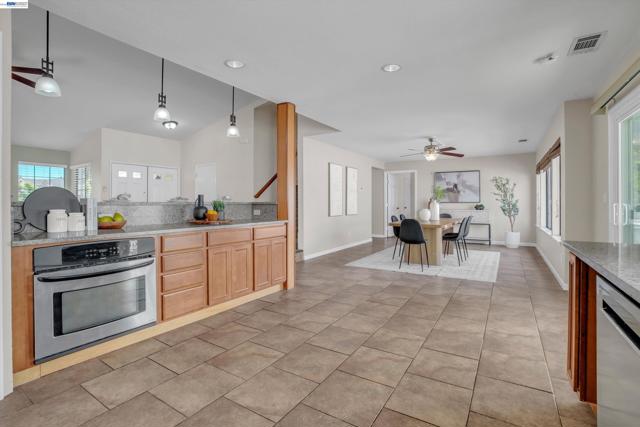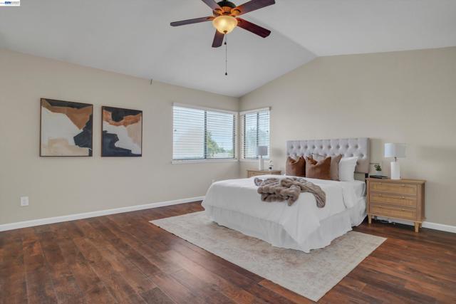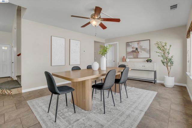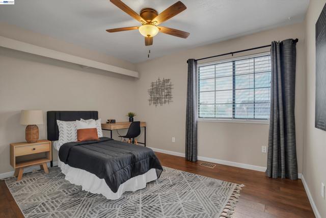Welcome to a well maintained home that sits on a quiet court and features three bedrooms upstairs with one bedroom and bath downstairs, ideal for guests or a home office. The backyard is designed for Central Valley living with a built in pool and generous outdoor space, plus RV access for added flexibility. A three car garage provides ample parking and storage. Fully paid off solar adds long term energy savings. Conveniently located near parks, schools, shopping, and commuter routes, this home delivers comfort, efficiency and location in one complete package.