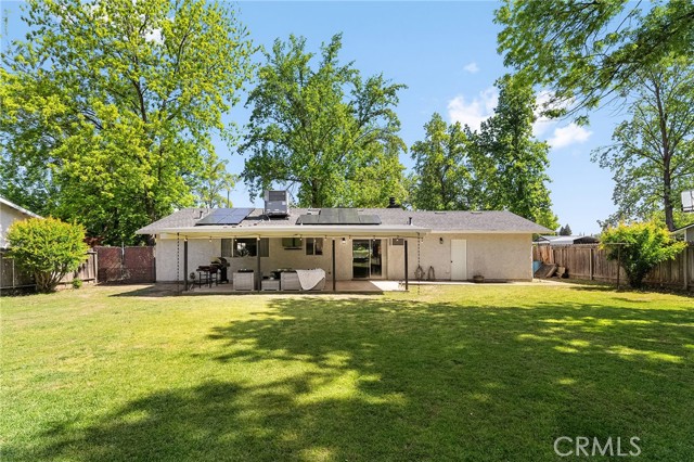 This upgraded 3-bedroom, 2-bath residence offers 1,120 square feet of comfort, style, and long-term value. Inside, you’ll find a refined living space featuring an updated upgraded kitchen, upgraded flooring throughout, and beautifully refreshed bathrooms. The primary bedroom features a walk-in closet and private en suite bath. There are two additional bedrooms with plenty of storage. Behind the scenes, significant investments give peace of mind for years to come: in 2022 a new roof, modern HVAC system and owned solar installed, delivering both sustainability and energy efficiency. In 2026, a brand new water heater also adds to the home’s turnkey appeal. The true standout is the expansive grounds, sitting on just under half an acre—offering a rare sense of space and privacy. Could be a good spot for entertainers, a garden oasis, or future expansion opportunity, the possibilities are endless. A property of this caliber—combining substantial upgrades, energy efficiency, and a premium lot size, is a rare offering in Chico. Experience elevated living with the space to truly make it your own.