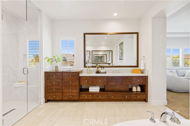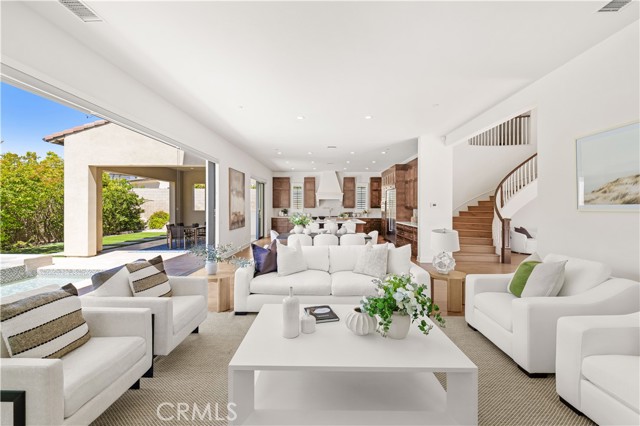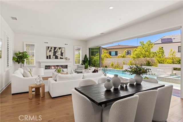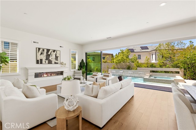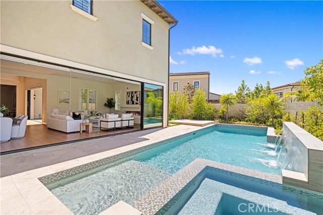 Welcome to this exceptional Toll Brothers luxury residence in the prestigious 24/7 guard-gated Altair community, featuring the highly sought-after Estrella floor plan and offering 5 spacious bedrooms, 5.5 bathrooms, plus a dedicated private office designed for today’s flexible lifestyle; this beautifully maintained home showcases an open-concept layout with expansive living and dining areas that seamlessly connect to a chef’s kitchen with a large center island, premium appliances, and abundant cabinetry, complemented by a highly desirable dual kitchen design (main kitchen + prep/spice kitchen) ideal for entertaining and everyday convenience; step outside to a private resort-style backyard complete with a custom swimming pool, while the generous spacing between neighboring homes provides a rare sense of openness and privacy in Irvine; additional highlights include a fully paid-off solar system for long-term energy savings, abundant natural light, and true move-in ready condition, all located within the exclusive Altair community offering resort-style amenities and access to the award-winning Irvine Unified School District, making this a rare opportunity to own a premium home with privacy, functionality, and luxury living.