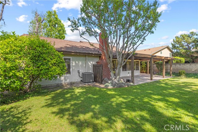 This charming single-story home in the established Old Orchard community of Valencia offers an ideal opportunity for a first-time buyer or someone looking to downsize. From the moment you arrive, the solid wood double doors provide a warm welcome, leading into a tile entryway characterized by high ceilings and an abundance of natural light. The functional open floor plan centers around a cozy living room fireplace and flows easily into the dining area and kitchen, creating a practical space for families. One of the standout features of this property is the seamless connection to the outdoors. A large, private covered patio sits just off the kitchen and living area, overlooking a spacious backyard with plenty of grass and mature landscaping. Inside, the primary bedroom is generously sized and includes a private bathroom with a walk-in shower, while the secondary bedrooms are well-served by a full hallway bathroom with a tub-and-shower combination. The home has been thoughtfully maintained with several practical updates, including a newer HVAC system, water heater, and energy-efficient dual-pane windows. Located in a friendly neighborhood near local schools, shopping, and entertainment, the property offers easy freeway access for commuters. With the added benefit of no Mello-Roos fees, this residence is a wonderful entry point into a sought-after area of Valencia.