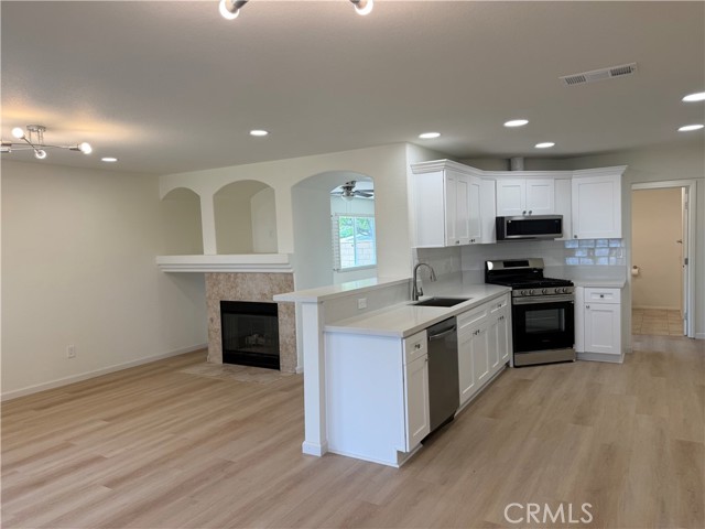 Breathtaking panoramic views of Lake Elsinore and the surrounding mountains highlight this beautifully remodeled hillside home situated on a 0.27-acre corner lot. This single-story 4-bedroom, 2-bath residence with no interior stairs offers approximately 1,770 sq ft of living space and is positioned to capture scenic lake and mountain views that only a limited number of homes in the area enjoy. The elevated hillside setting provides privacy and an open vantage point overlooking the lake and surrounding landscape. The home has been completely remodeled with modern finishes throughout. Recent upgrades include new vinyl flooring, new kitchen and bathroom cabinets, stainless steel appliances, ceiling lights, and ceiling fans in every room, creating a bright and comfortable living environment. The property also includes an enclosed sunroom / covered patio, offering additional space for relaxing or enjoying the scenic surroundings. Additional highlights include owned and paid-off solar panels for energy efficiency, an ADT security system (can be transferred if new owner desires), and a 2-car garage. This property offers a rare combination of views, privacy, modern upgrades, and energy efficiency in a desirable Lake Elsinore location. Homes with views and privacy like this rarely come on the market. Schedule a showing to experience the views for yourself and appreciate the setting. Details provided are believed accurate; buyers are encouraged to verify.